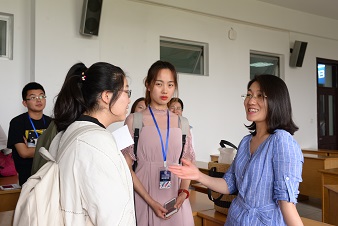 安排了师生座谈会,对学生的学科方向选择进行了指导和答疑。在专业交流会上,老师们耐心地回答每位营员提出的问题,用幽默风趣的语言将复杂的科学与日常生活结合,解决了同学们的疑惑,也更有利于营员对未来研究方向的选择。经过与老师的积极交流,同学们更准确、坚定地选择了心意的学科专业。