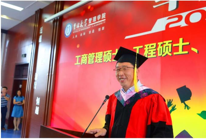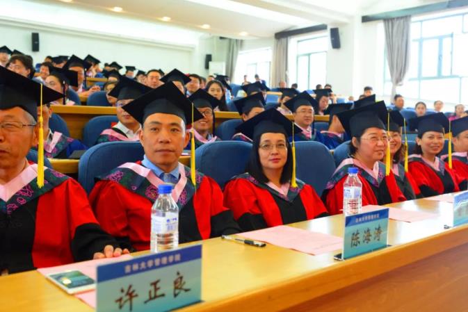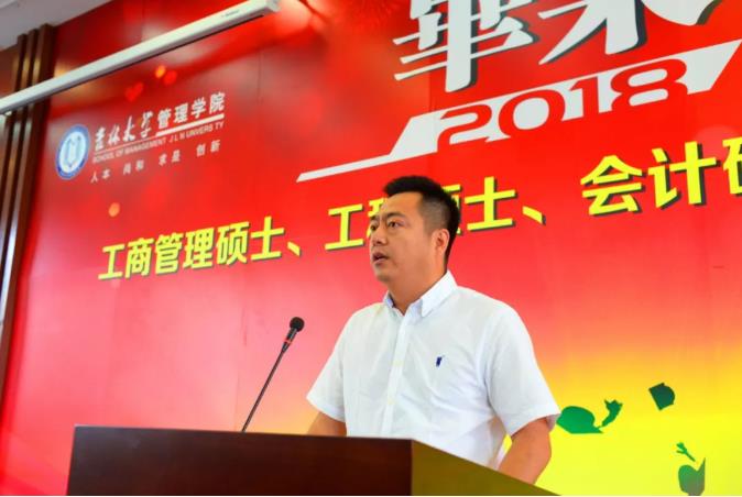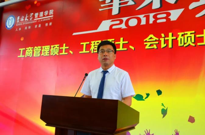 院长赵树宽教授致辞。赵院长向各位来宾表示热烈的欢迎,向即将取得硕士学位的同学们表示热烈的祝贺;他叮嘱同学们不忘师恩,砥砺前行。他向同学们提出几点希望与大家共勉:第一,以创新思维回响时代召唤。保持创新思维,就是要有敢为人先的锐气,以求真务实的态度,结合实际积极探索新方法、新途径。不断学习是建立创新思维的根本,坚持学而信、学而思、学而行是创新行为的体现。第二,以创业精神开拓迟迟行道。创业精神就是保持激情,创业精神也是从容乐观,创业精神更是责任与担当,同学们要以负责的心对待生活和事业,克己恬静、宠辱不惊。第三,以赤子情怀坚守致知初心。要在这个充满诱惑与迷茫的社会中不忘初心,首先就必须具有奉献精神,同时还要常怀感恩之心。赵院长表示管理冰球突破
