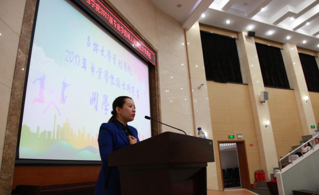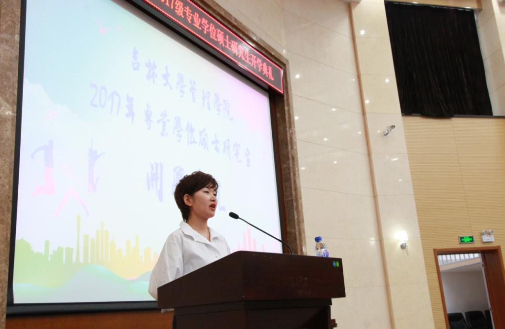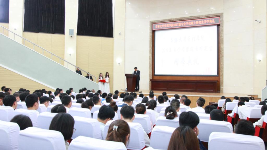 秋风送爽,丹桂飘香,在充满希望的九月,我们迎来了冰球突破 管理冰球突破 专业学位硕士研究生开学典礼,一批有着强烈求知欲的莘莘学子迈进了吉大校园。2017年9月16日上午,冰球突破 管理冰球突破 2017级工商管理硕士,会计硕士,图书情报硕士研究生开学典礼在吉大南岭校区仿生楼报告厅隆重举行。出席本次开学典礼的有:管理冰球突破 院长赵树宽、党委书记张兴林、副院长樊雪梅、党委副书记方长春、企业管理系徐颖主任、MBA教育中心房伟主任、以及在校生代表和全体新生。开学典礼由张公一副院长主持。
