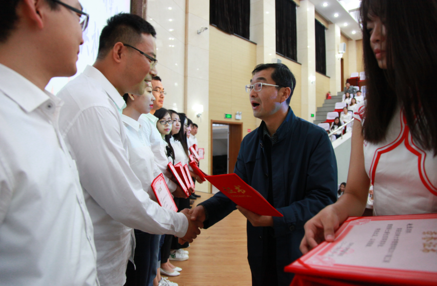 佩戴完毕后,方长春副书记、樊雪梅副院长为获得管理冰球突破 MBA奖学金的同学一一颁发了荣誉证书。