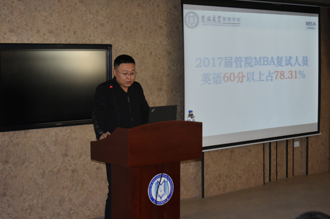 16级MBA李凌宇同学、17级MBA新生娄岩同学分别就管理类联考、外语的备考经验向考生进行交流,期间李凌宇同学特别就“备考时间分配”、“平均主义阅卷方式”进行了生动详细的介绍。