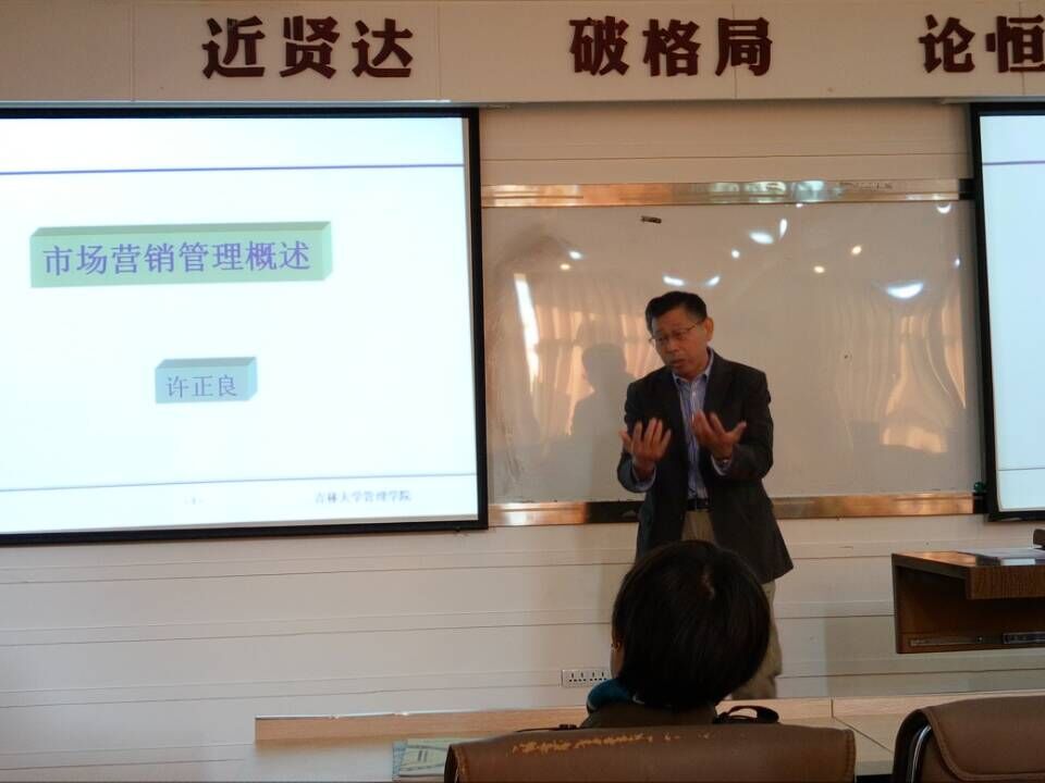 (许正良教授正在讲授《营销管理》课程)