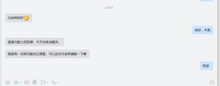 马鸿佳老师用企业微信直播经济法课,用钉钉会议直播运营决策课,还进行了热烈的讨论,学生们的热情被调动起来,不仅课上微信群里讨论热烈,课后还与老师继续探讨问题。