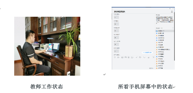 《经济法》这门课程,是公共选修课,是选课人数多达130人的大课,通过最初与学生们真实网络连线互动及在平台的直播试用,最终马老师选择了“企业微信”这个平台进行网络直播授课。而《跨国公司运营与管理》这门课程是基于“CEsim平台”的在线决策模拟类课程,并且选课学生结构相对复杂,有国际商务专业学生专为修学分选课,有其他多个专业的30余名学生为了在2020年参加“尖峰时刻商业模拟大赛”而选课,因此,基于不同的选课目的,他将学生进行了分类划分,将同一门课程,分成了两个班,并且每个班的课程设计中将学生们又分成了不同的小组,组队进行角色扮演、商战模拟、团队PK、还要进行研讨互动等,寓教于乐,让学生们上网课有别于其他课程,对课程产生浓厚兴趣,课堂内容更丰富、课堂氛围更活跃,因此,该课程选择了运用“企业微信”对学生们统一直播讲授,然后分组用“钉钉会议”的方式,进行演练、研讨、展示,达到互动与交流完美结合的效果。