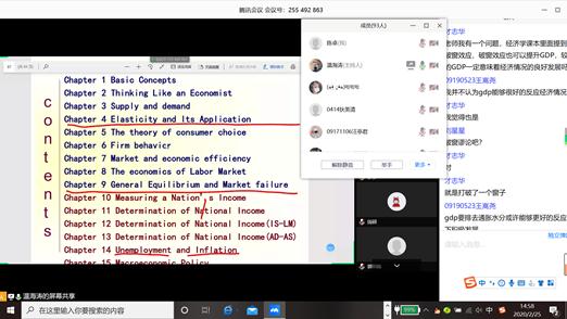 为了调动学生们的学习积极性,温海涛老师通过提问(选人)、抢答、投票等活动,让学生们更多的参与到课堂中;通过QQ群字幕交流,基本上做到了实时答疑;同时设计了一些讨论话题,如口罩是不是稀缺物品?在疫情控制期间如何合理解决口罩紧缺的问题等,用英文发布讨论话题,同学们也多用英文来回答,达到了双语课程专业知识训练的效果。
