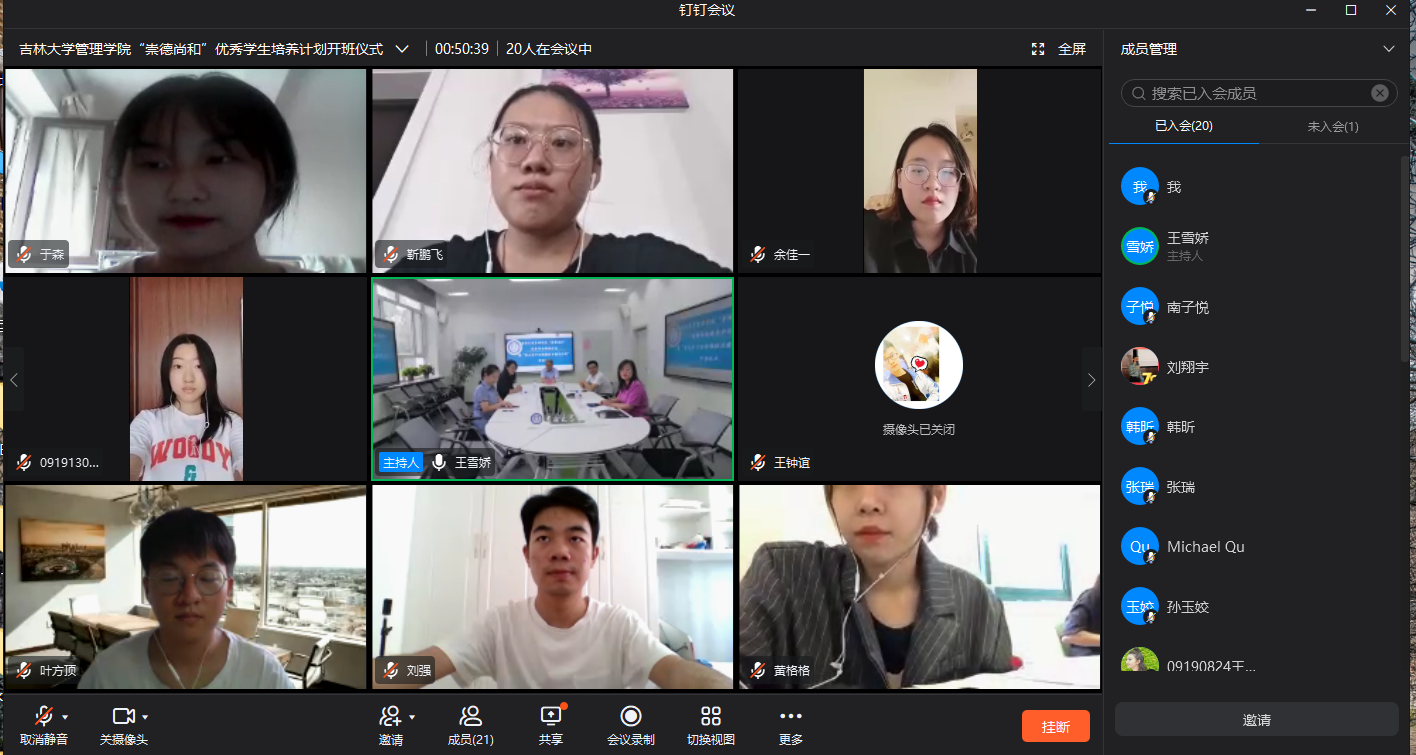 党委副书记兼副院长彭鹏,学生辅导员刘翔宇,项目负责人Micheal和暑期项目全体25名学生通过钉钉会议在线上参加了本次活动。活动由管理冰球突破