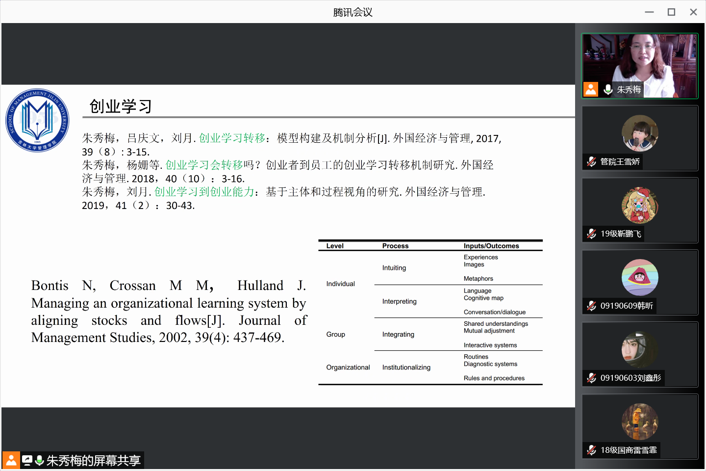 朱秀梅教授主讲,讲座以线上的形式在腾讯会议上顺利举办,本次项目的相关负责老师及25名学生全程参与。