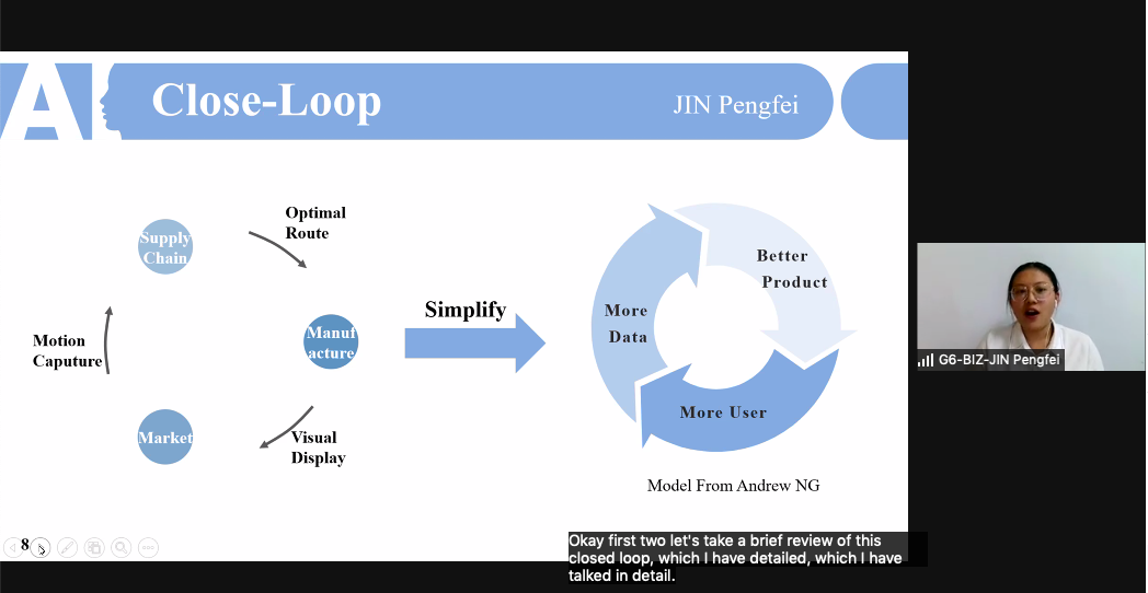 第六组的研究主题为“运用开箱即用的思维,提出人工智能在未来消费者产品中应用的三种新方法”,小组重点关注制造业并以服装行业进行举例。为了突破传统服装行业的瓶颈,小组在基于人工智能的关键环节,即消费品的生产设计、供应和市场三个环节,提出了三种创新的方式。鉴于服装行业对技术改造的要求很高,在生产设计中采用GauGAN模型构建智能设计方法,超级启发式算法用于设计供应链路径,并在供应链中进行增强学习,以找到最优路径,通过市场中的运动捕捉技术增强现有虚拟配件产品,并通过AI技术实现三个环节的有效闭环,进而提高整个行业的质量和整体技术迁移,并且有助于产品设计师、管理层和企业决策。