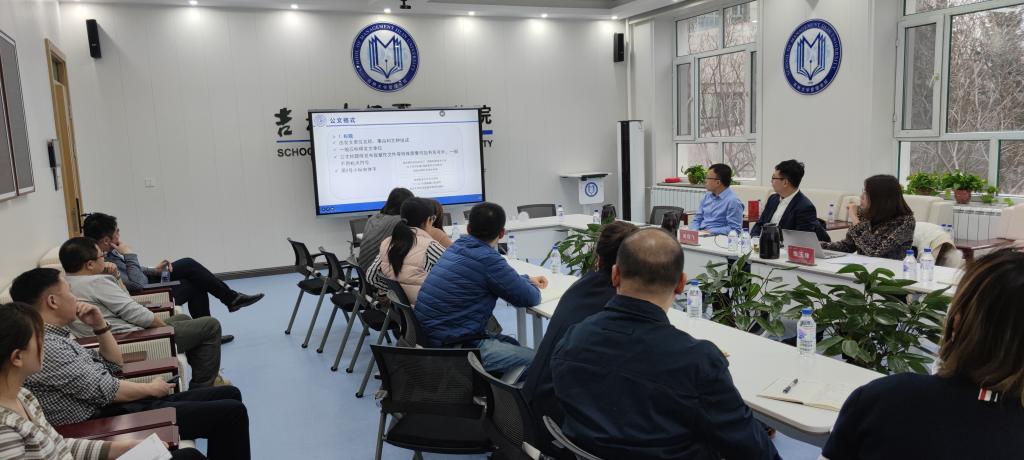 机关全体工作人员一起就公文写作与处理进行交流,交流会由行政副院长马腾主持。