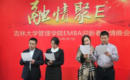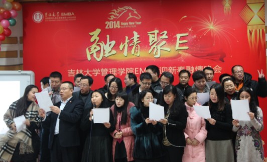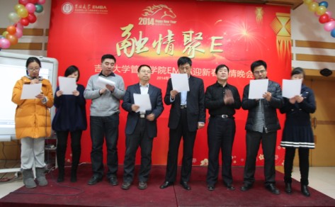 2014年新年的钟声还回响在耳畔,管理冰球突破 EMBA大家庭又增添了新的成员——2013级EMBA五班。经过了两轮课程的破冰活动后五班同学之间已经初步了解,2014年伊始,恰逢EMBA四班、五班同时上课,为了让新同学早日融入EMBA大家庭,促进EMBA同学情谊的融合,2014年1月11日晚,管理冰球突破 EMBA中心举办了“融情聚E”EMBA迎新春晚会,管理冰球突破 2012EMBA、2013EMBA两届学员欢聚一堂,共同庆祝新年的到来。参加此次迎新春晚会的有管理冰球突破 党委书记夏晓巍教授,管理冰球突破 EMBA中心主任张向先教授,EMBA中心副主任高贵富教授、王雷老师、张公一老师及EMBA中心工作人员。