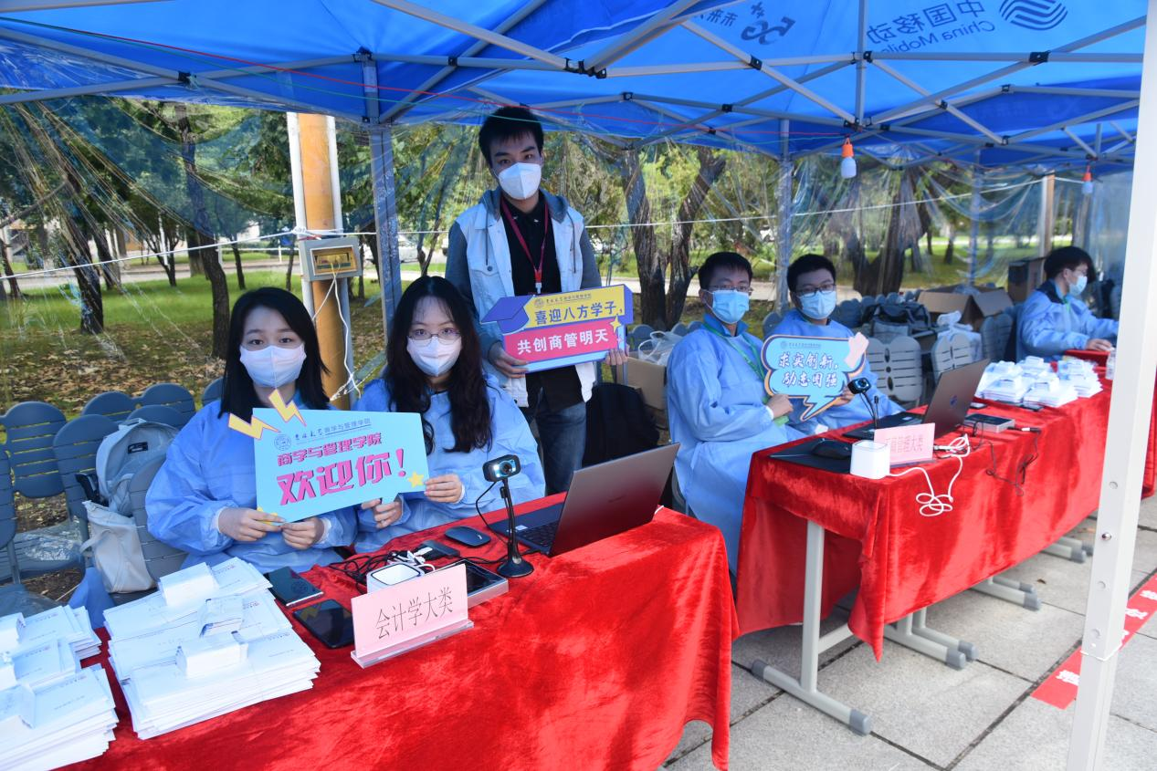 的老师与学生志愿者们忙碌的身影继续遍布各迎新工作点,精神饱满地迎接新同学的到来。迎新工作各个步骤细致、到位,志愿者们穿戴整齐、分工明确,测温、消毒有条不紊的同时,大家或认真核对信息、分发新生材料,或帮忙运送行李、看管物品,或解答新生疑惑、引导新生乘坐校园小巴至寝室楼下。热情且不失细致、耐心的服务贯穿新生从入校到进入寝室的全过程,令每一位新生被来自冰球突破