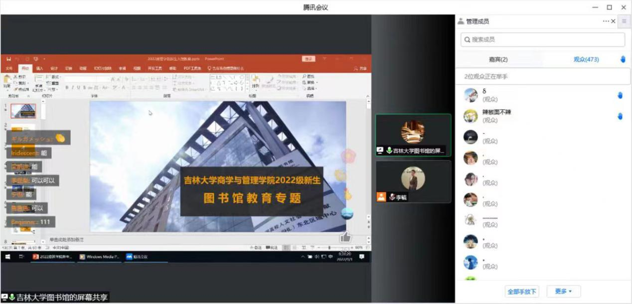 全体2022级本科生参与了“图书馆教育专题”和“校园安全防火教育专题”两场讲座。