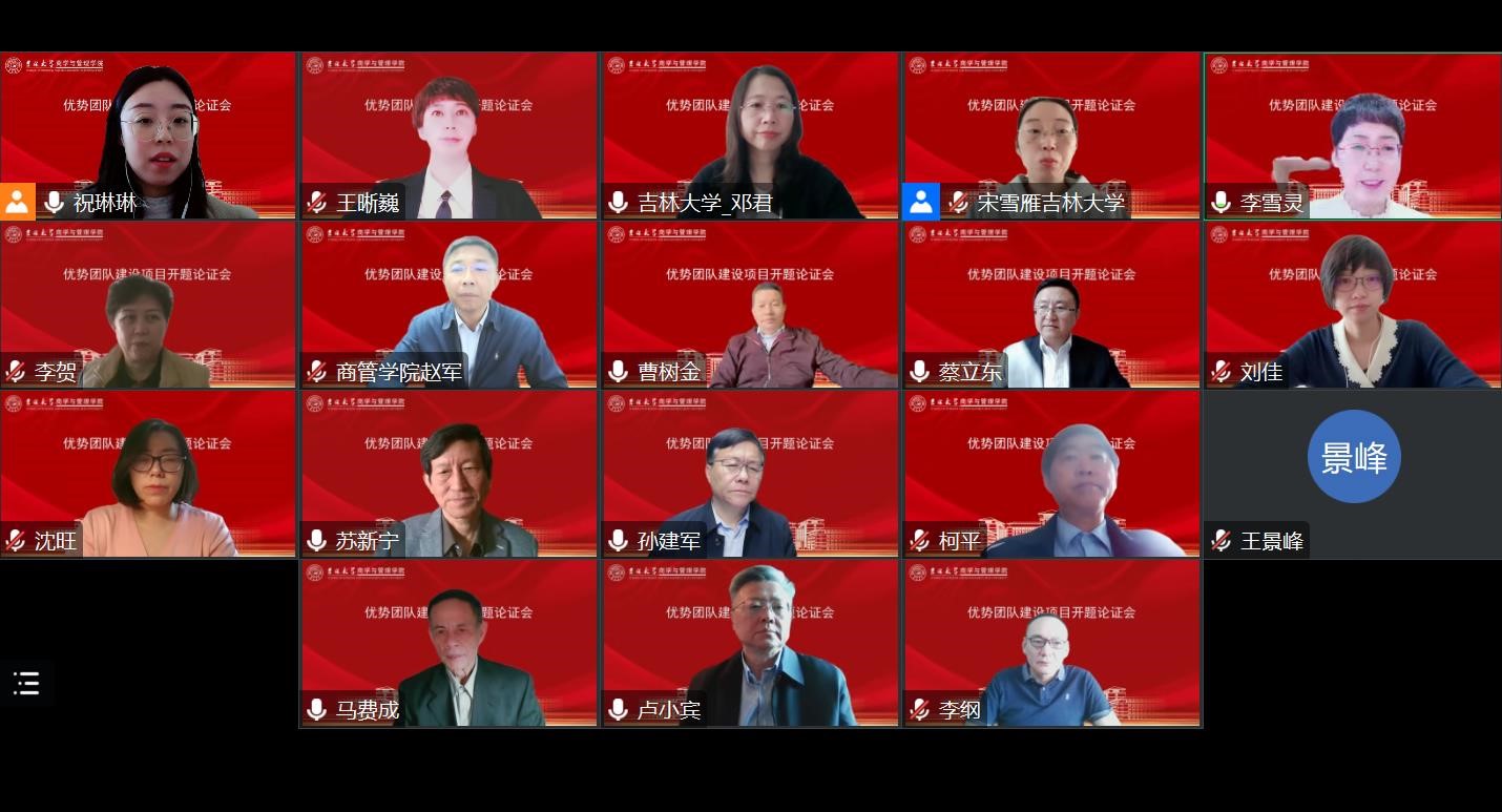 优势团队建设计划项目团队“数智驱动的信息资源服务体系重构及知识体系建构研究”开题论证会以线上会议方式召开。来自武汉大学、南京大学、南开大学、中国人民大学、中山大学、冰球突破