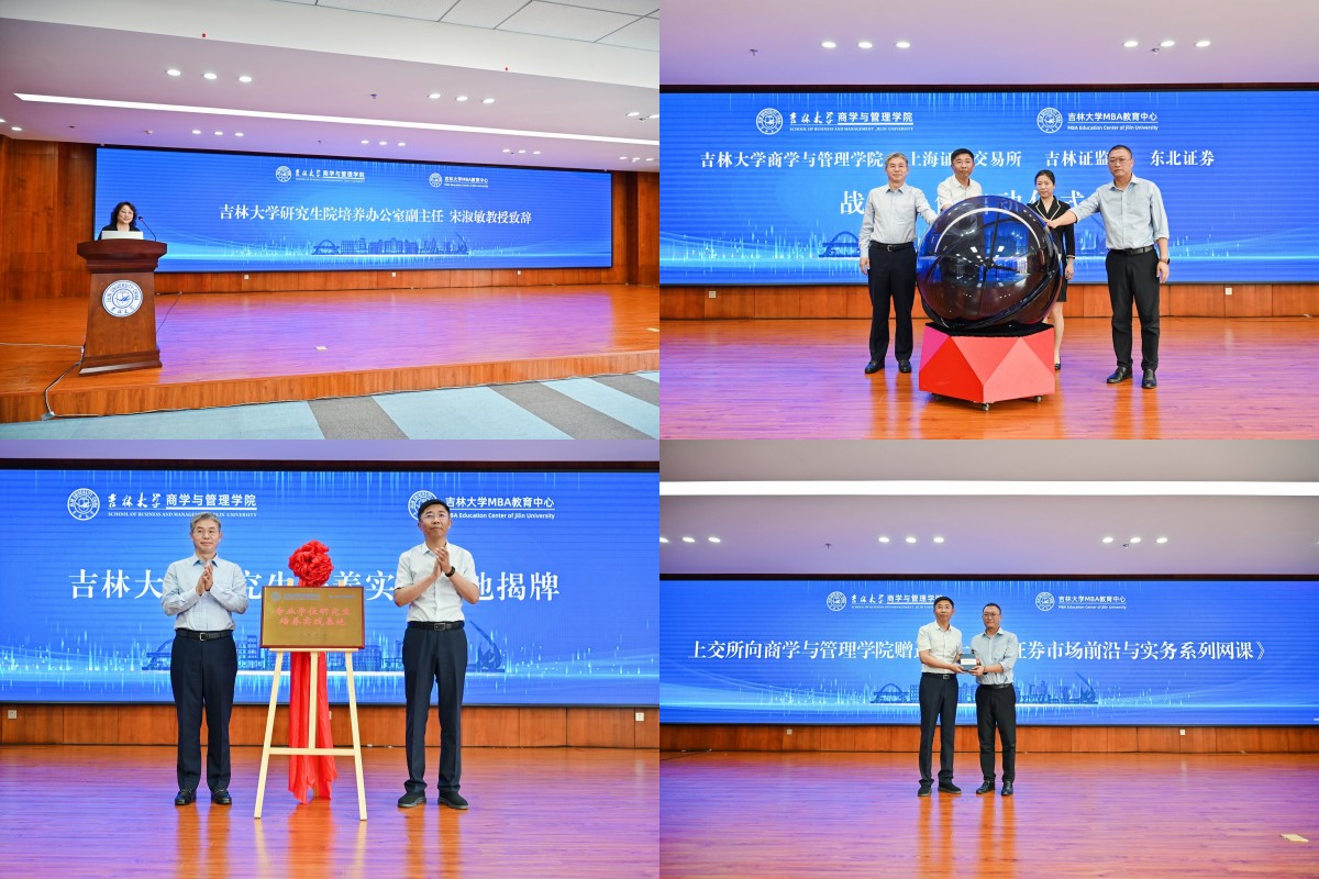 党委书记赵军、东北证券总裁何俊岩共同为研究生培养实践基地揭牌。上交所投资者服务部资深经理周翀向冰球突破