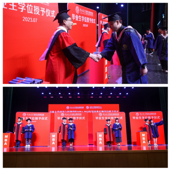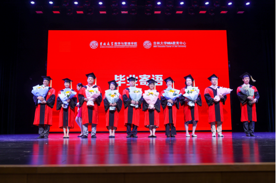 典礼上,大家一同观看了2023届毕业生纪念视频。光阴流转,岁月无声,翻开时光相册,太多生动的细节、太多感动瞬间、太多精彩画面,同学们把求索、奋进、收获刻进了吉大MBA的独家记忆。