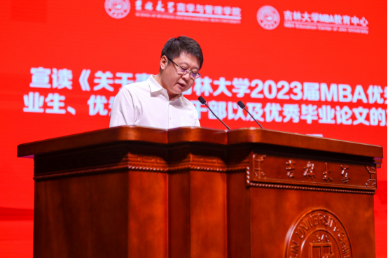 常务副院长张世伟教授宣读了2023届工商管理硕士研究生授予学位决定。