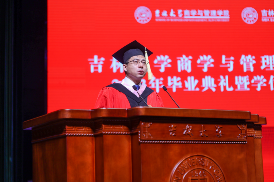 中国电信吉林分公司副总经理、2007级MBA校友张哲新作为校友代表为毕业生送上祝福,并与家分享工作的感悟。他强调,面对未来,一是把握好企业的方向。二是落实好企业的工作。三是持续提升自己的能力。当下的企业家应该具备系统思维,能够深度思考、针对不同场景分解问题;具备计算思维、逻辑思维,以便和人工智能对话;具备对人性敏锐感知的能力,以便管理差异化个体。此外,他期待毕业后大家可以保持联系,再续校园情谊。