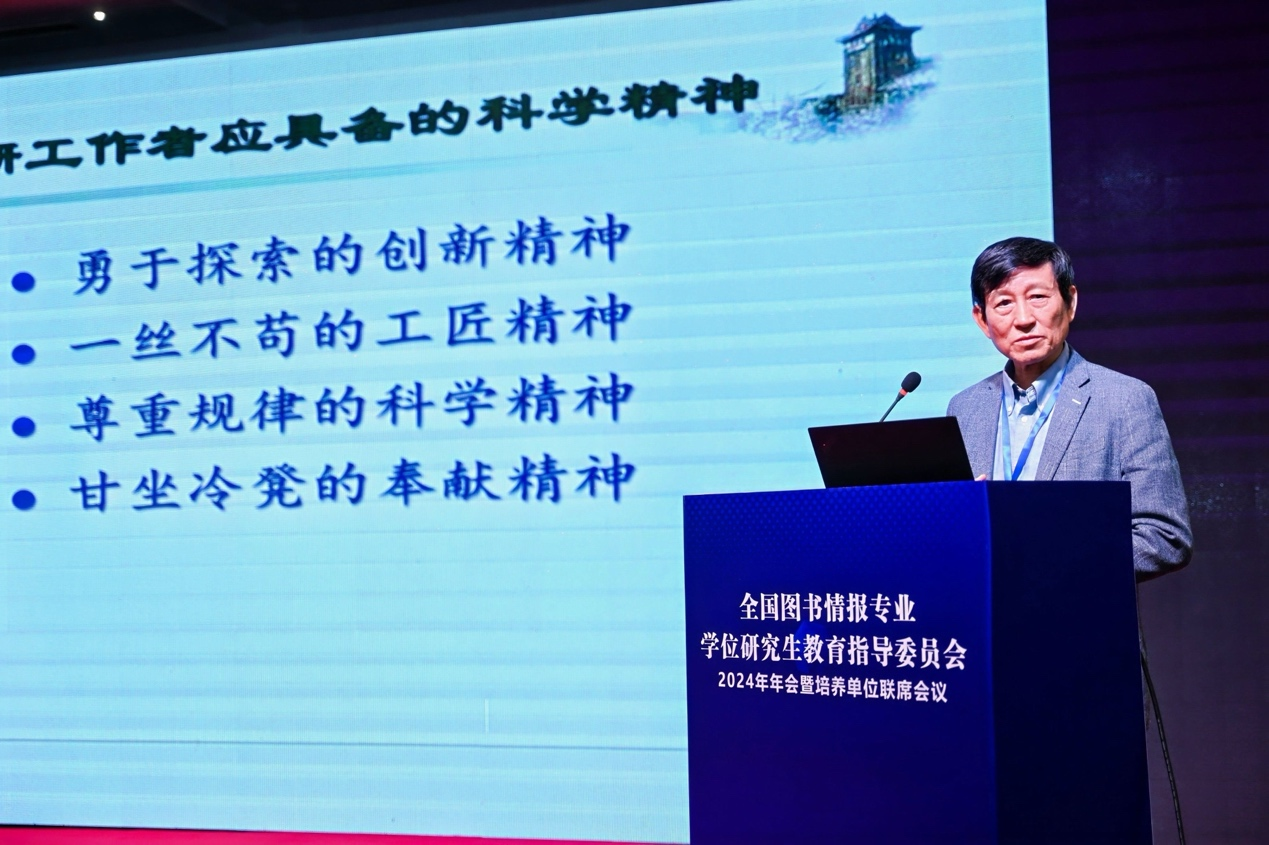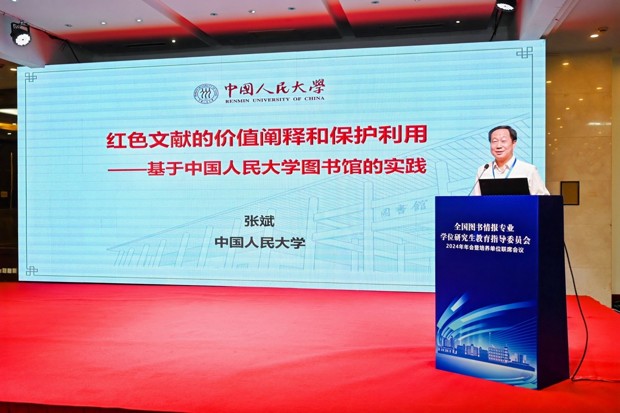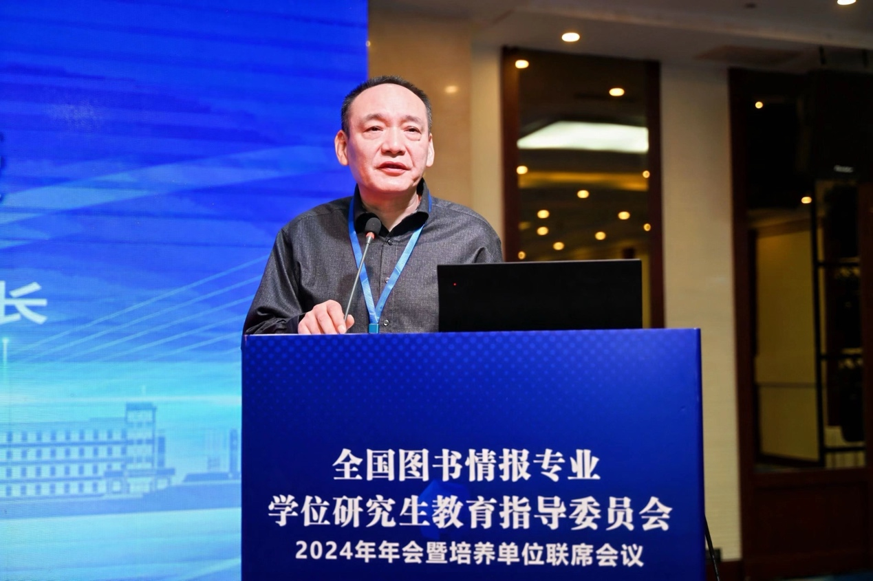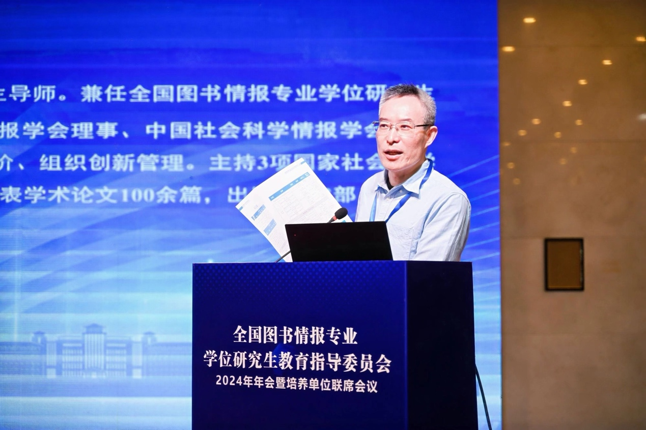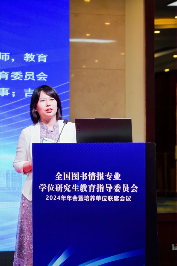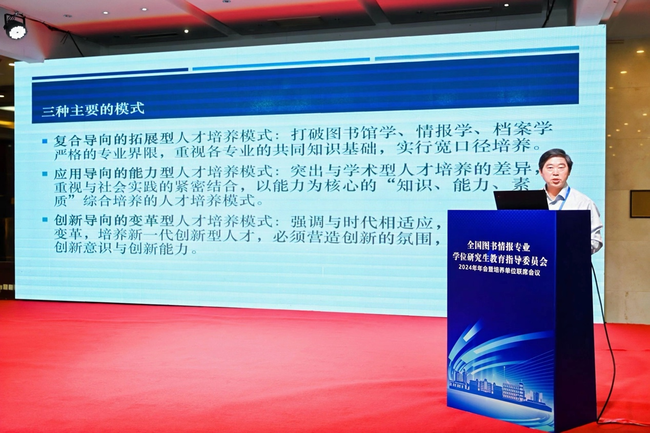 图书情报硕士人才培养体系建设实践”的报告,分享了其在图书情报硕士专业学位研究生教育方面的举措与经验。