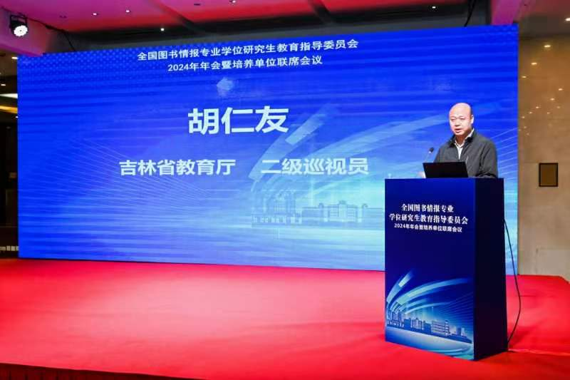 吉林省教育厅二级巡视员胡仁友在致辞中指出吉林省在党的全面领导下积极贯彻“十四五”教育发展规划,致力于提升人才自主培养质量,构建高质量教育体系,为我省的全面振兴和社会主义现代化建设作出教育新贡献。他介绍了省内专业学位发展和学位点建设的总体布局,并肯定了我省在图书情报专业硕士培养和学科建设等方面取得的成绩。他期望借助本次大会,省内四所高校学位授权点能够全面展示各自的办学成果和特色,通过加强交流合作,取长补短,共同打造图书情报硕士人才培养的吉林品牌和吉林模式,为区域经济社会发展持续赋能。