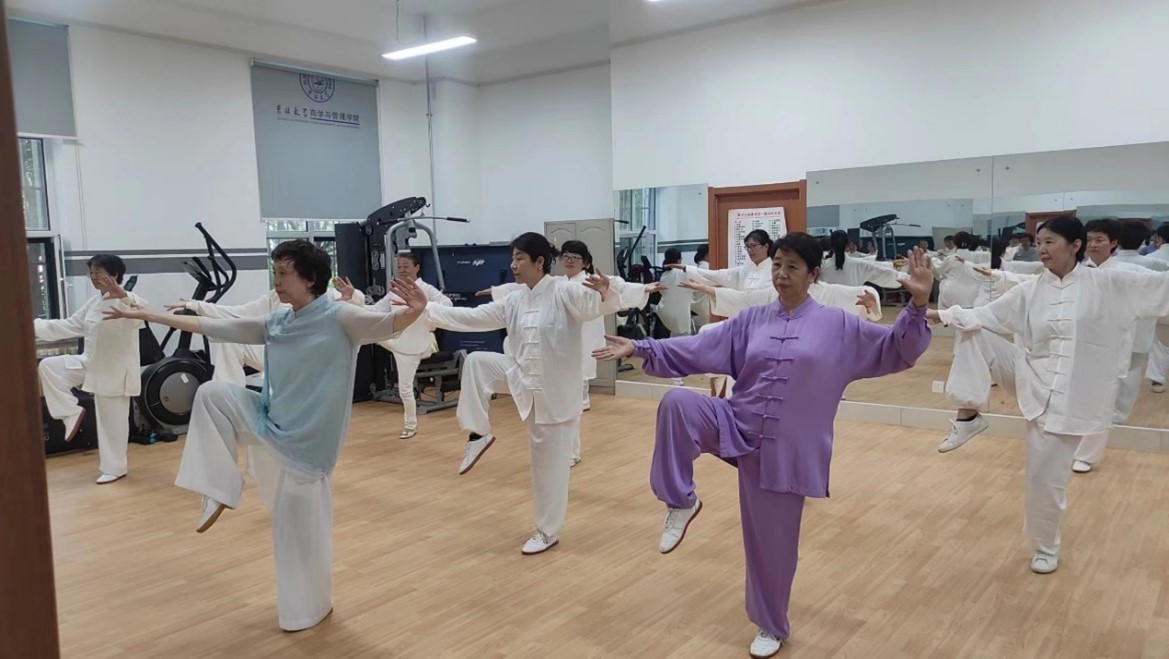 组建后有宽敞明亮活动室的“成熟时期”,队伍愈发壮大,团队也日益精进。随后,太极拳社团全体教师以飒爽的风姿、昂扬的风貌,共同打完了毕业前“最后一套拳”。张秋惠教练认真为拳友们纠正姿势,喊号发令。全体拳友聚精会神,一招一式间无不彰显出平日训练的刻苦。拳落收势,全体拳友纷纷为张秋惠教练鼓掌致敬,掌声久久不息。
