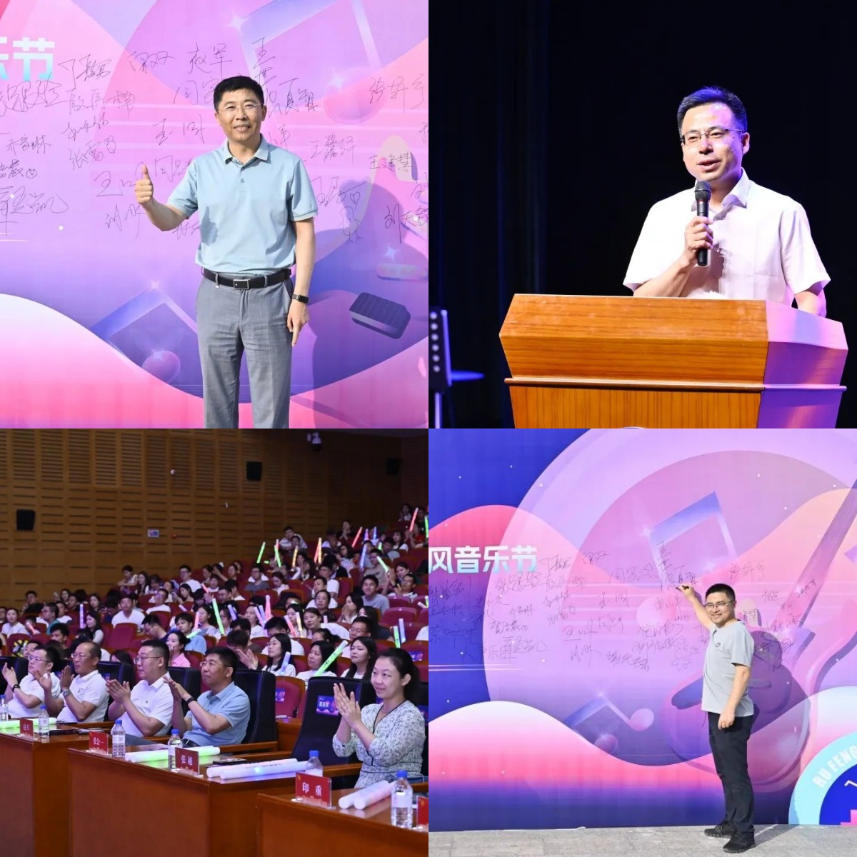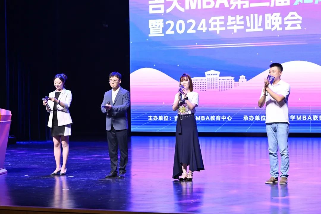 副院长张公一教授等院领导以及MBA教育中心全体老师出席了本次晚会。宜宾五粮液股份有限公司黑吉营销大区总经理刘海先生,宜宾五粮液股份有限公司黑吉营销大区吉林营销区域总经理王艺璇女士,五粮液吉林省经销商联谊会秘书长潘皓泳先生等也应邀莅临现场。这次音乐节是献给2024届MBA毕业生的礼物,也象征着一段青春旅程的辉煌里程碑。在这场特别策划的活动中,每一个音符、每一束灯光都满载着对MBA毕业生们过去两年努力与成长的庆祝,也满含对2022级MBA同学们即将踏上新征途的美好祝愿。