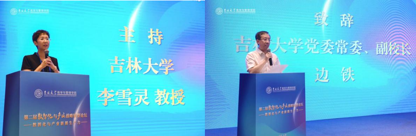 党委常委、副校长边铁致辞。边铁副校长首先对向远道而来的嘉宾们致以热烈的欢迎,指出“数智化与产业新质生产力”这一主题不仅关乎新时代产业高质量发展,更关乎数智化在推进中国式现代化建设中的作用,具有重要的学术价值和现实意义。作为论坛的主办方,冰球突破