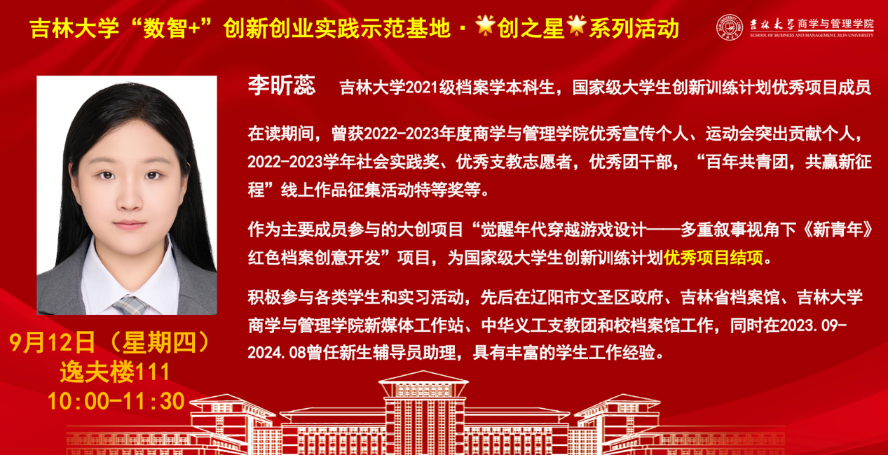 国家级“大学生创新创业训练计划”项目“蓝绫宫裱,星罗万象——《赤道南北两总星图》交互式数字展品设计”和“觉醒年代穿越游戏设计——多重叙事视角下《新青年》红色档案创意开发”的主要成员,围绕大学生创新创业实践经验和执行过程进行介绍,吸引了来自档案学、大数据管理与应用等专业本科生60余人次。