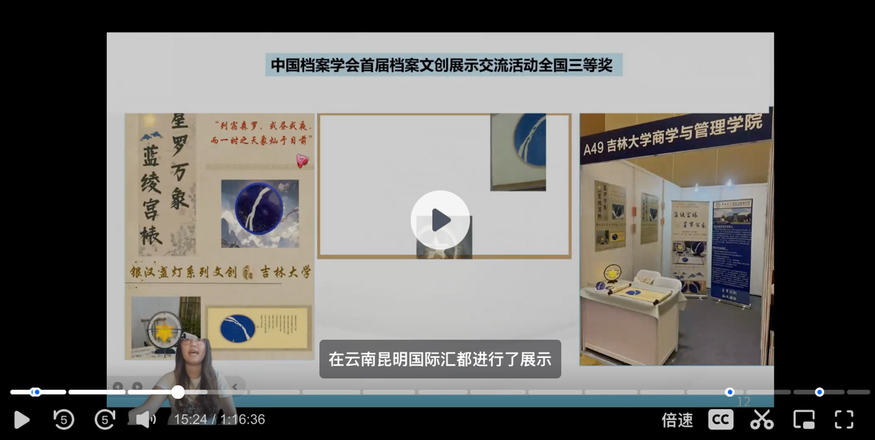 排名第三的成绩推荐国家级结项,其作品还参加了中国档案学会主办的全国首届档案文创作品展示交流活动,广受业内好评。艺阳同学从时间规划、灵感来源、选题与组队等方面,和与会学生进行了深入交流。