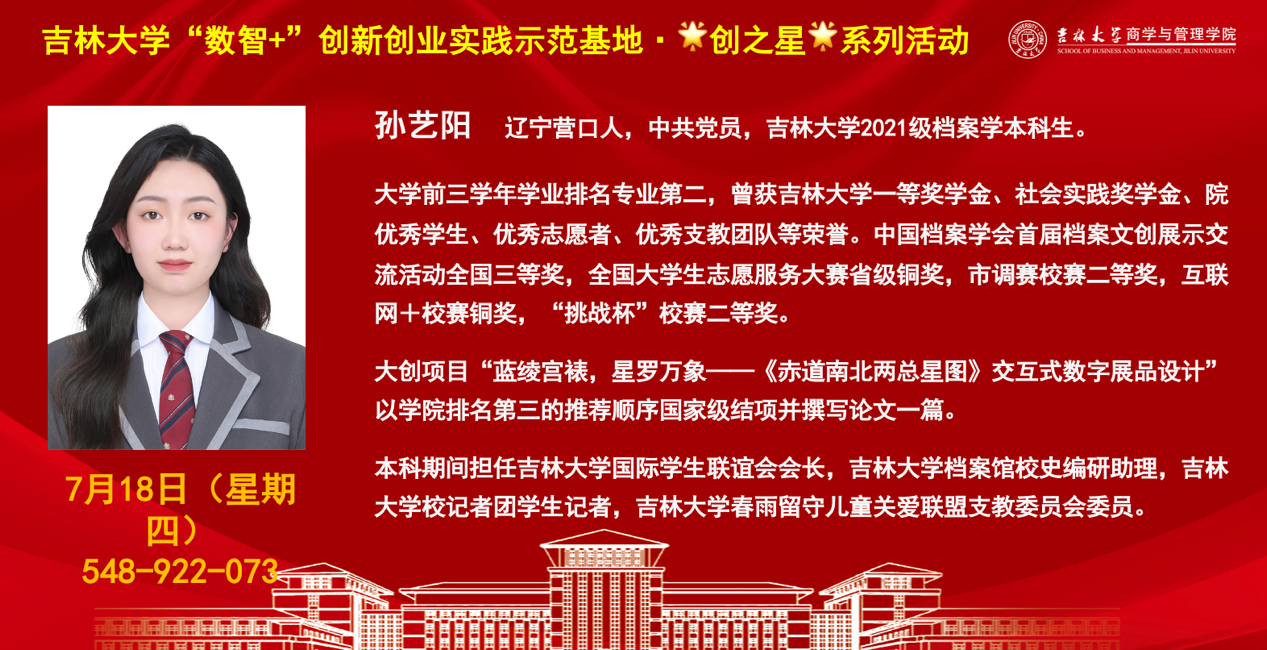 2021级档案学专业孙艺阳同学,以线上讲座形式、代表项目组成员分享其参与完成的“蓝绫宫裱,星罗万象——《赤道南北两总星图》交互式数字展品设计”大创项目,该项目以冰球突破