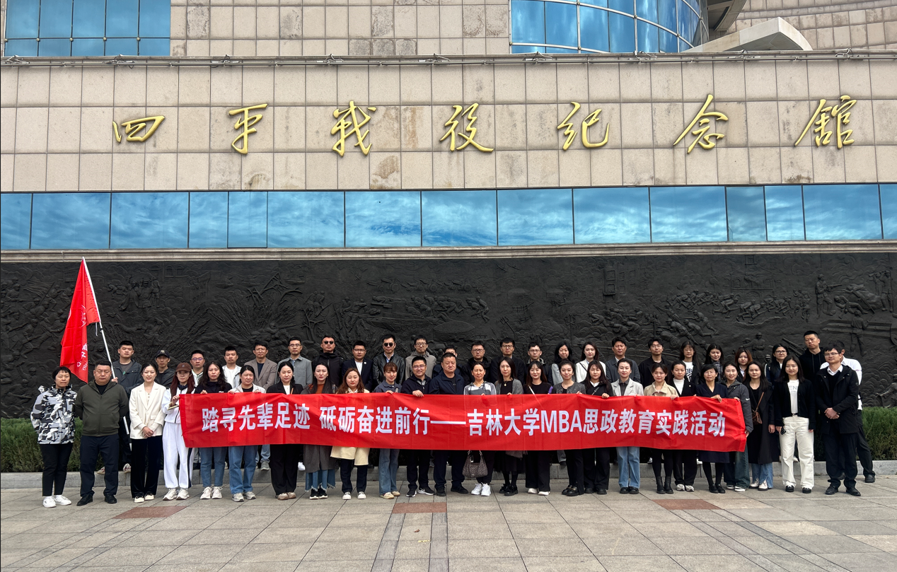 MBA 教育中心组织部分 2023 级与 2024 级 MBA 学生前往英雄城四平市,开展了以 “踏寻先辈足迹,砥砺奋进前行” 为主题的MBA+思政教育实践活动。MBA学生事务工作办公室王世强主任、李元凤老师带队参加了活动。活动得到了四平市退役军人事务局的大力支持,四平市人民政府军用饮食供应站王宏安站长、柴美汇主任全程参加了活动。