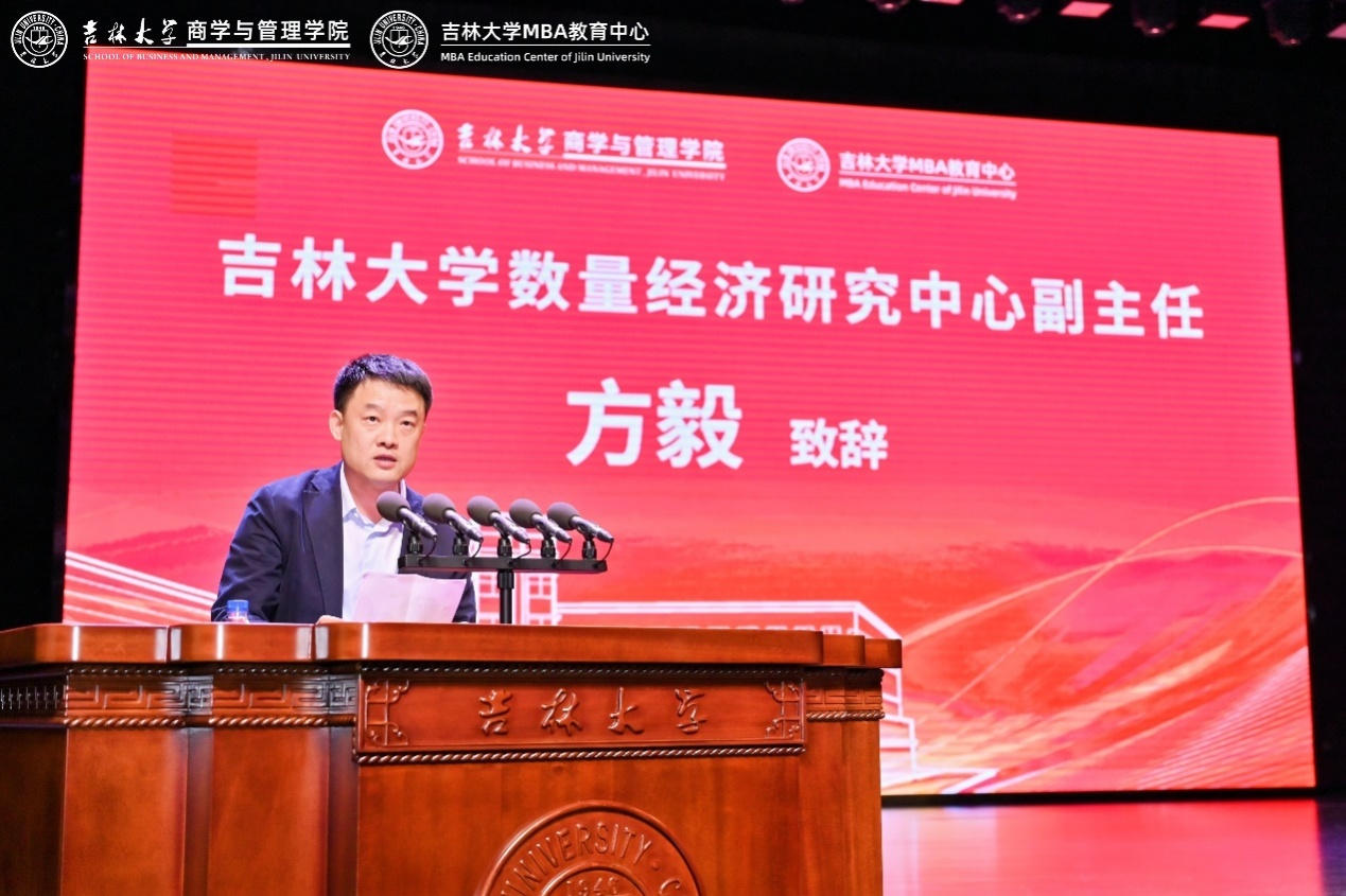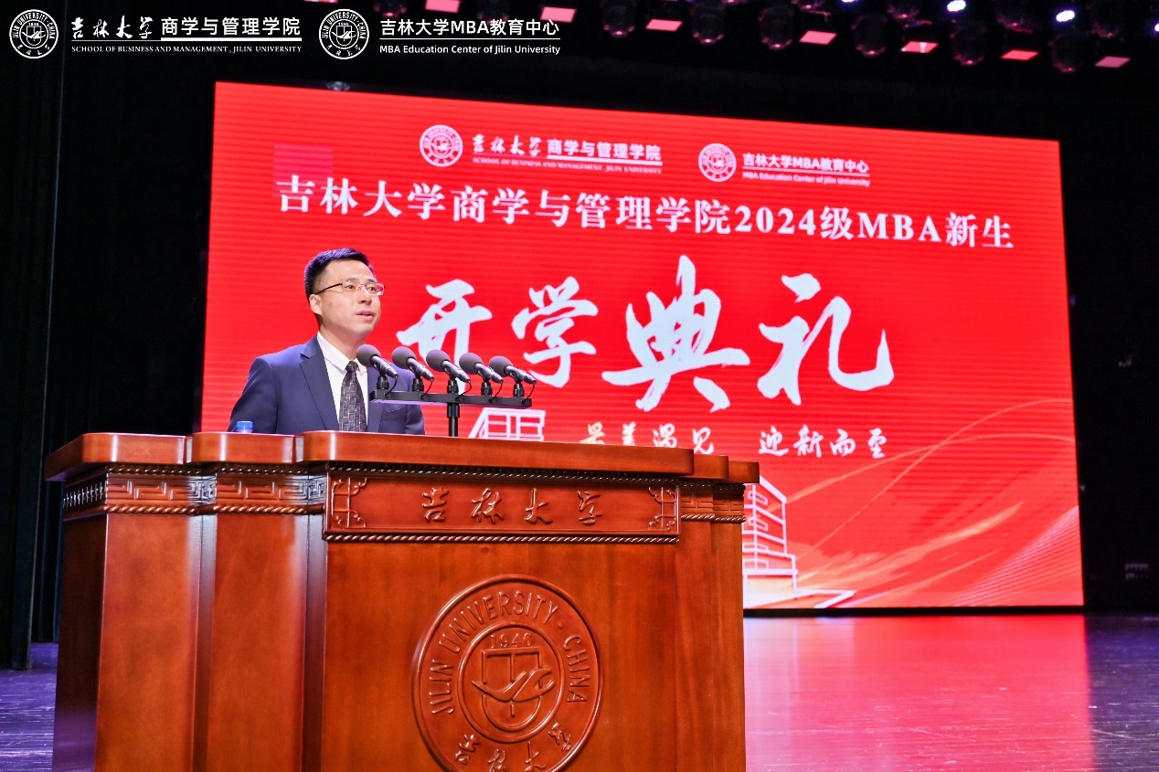2024级MBA开学典礼在鼎新大讲堂隆重举行。党委书记赵军,数量经济研究中心主任孙巍,党委常务副书记、纪委书记丰硕,常务副院长隋建利,党委副书记兼副院长李帅,党委副书记马腾,副院长郭英彤、李雪灵、马捷、刘欣,教师代表及MBA教育中心全体工作人员出席典礼。典礼由MBA教育中心主任兼副院长张公一主持。