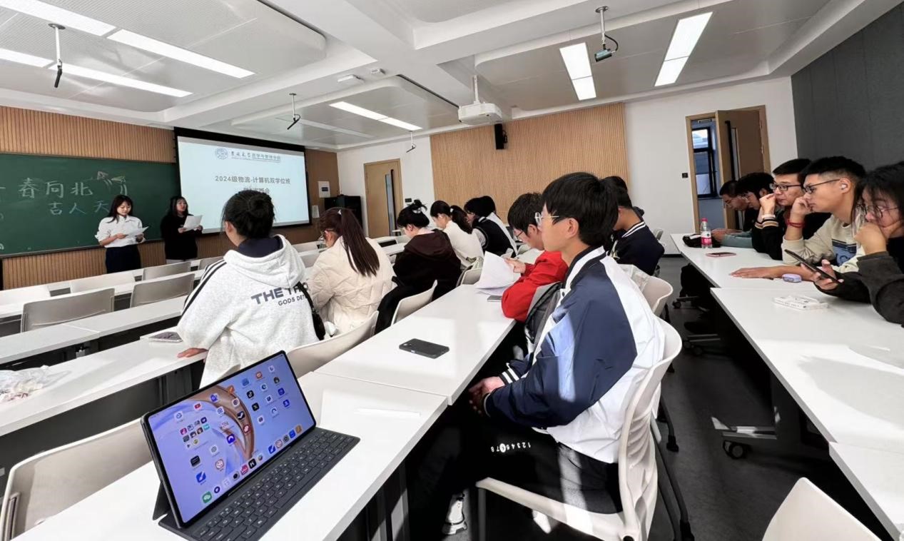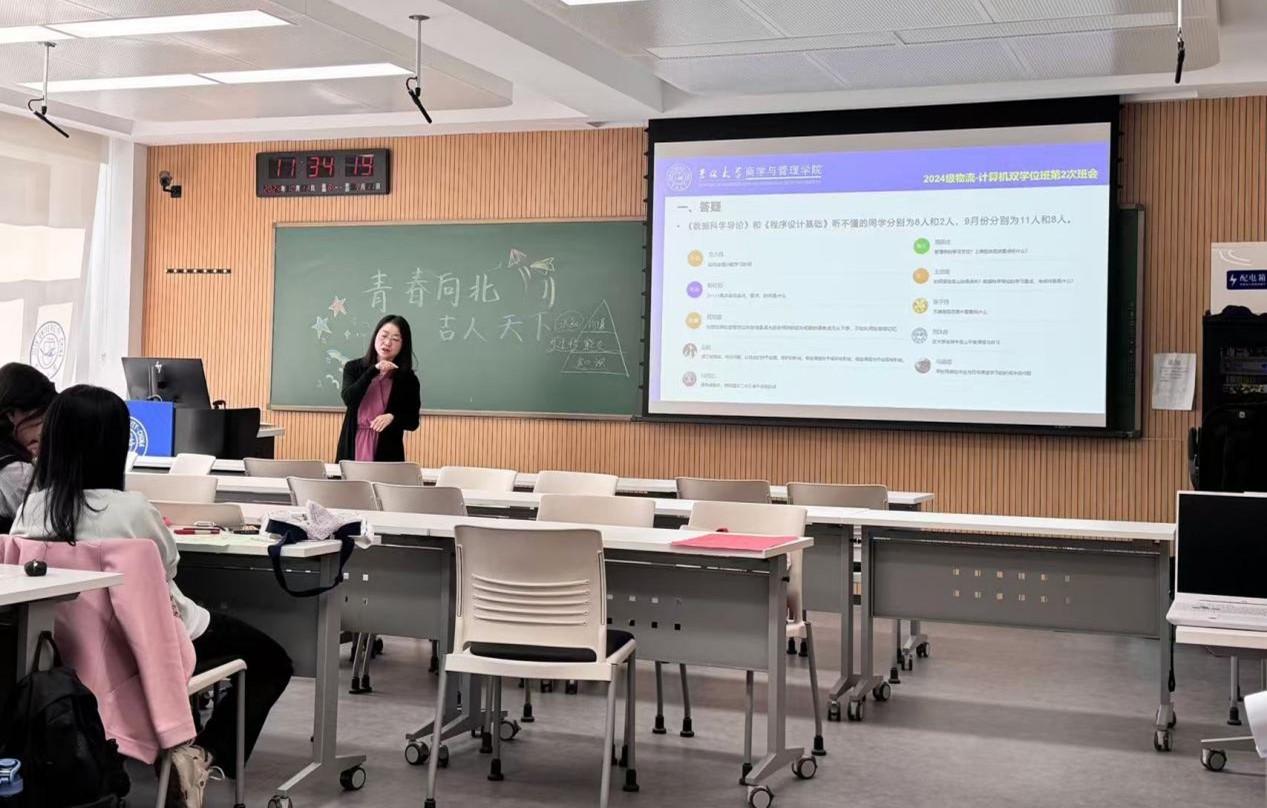 在敬信楼C111召开2024级“物流-计算机”双学位班心理团辅暨“青春向北,吉人天下”主题班会活动。班主任王杏老师、冰球突破