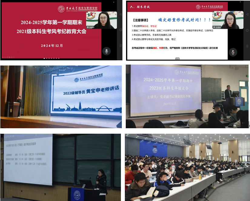 成立期末考试考风考纪教育管理工作小组,制定院级考风考纪教育管理工作方案,有效督促学生认真复习备考,切实增强学生自律意识和诚信意识。同时加强考试期间对各类重点关注学生的关心帮扶,持续深入学生宿舍、课堂,发现问题及时解决、化解、疏导,帮助学生做好心理调适,及时给予学生必要的心理指导和学业指导。学工团队还进一步强化学生党员的纪律意识,发挥党员在学风考风先锋模范作用,引导学生党员、学生干部带头作出诚信考试的承诺,并且密切关注网络舆情,对存在作弊倾向或苗头的学生及时给予干预和制止,引导学生诚信参考。