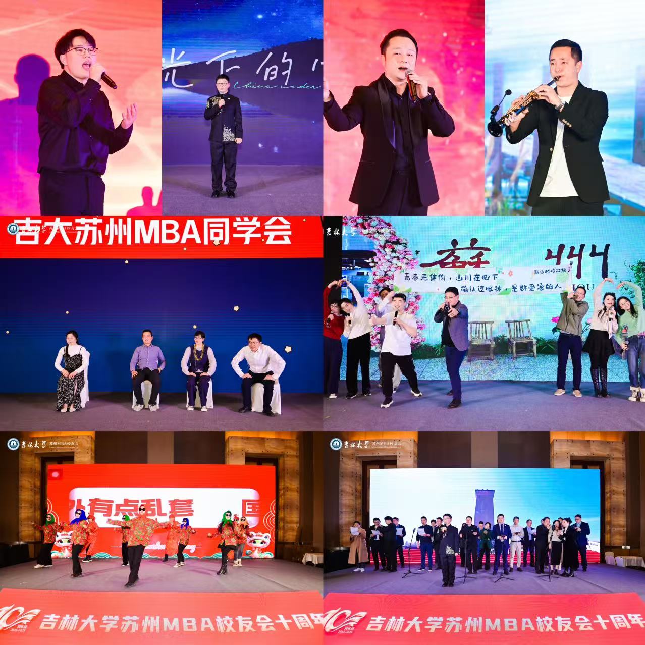 在庆典上,校友们以多元艺术形式献礼十周年,开场舞《改革春风吹满地》以热烈的氛围拉开序幕,独唱《追梦赤子心》、诗朗诵《月光下的中国》、小品《老同学显摆大会》、萨克斯独奏《兰亭序》、小合唱《踏春》、独唱《精忠报国》道尽学子对母校的深情厚谊。活动中穿插多轮抽奖环节,更是把氛围推上高潮。最后,新一届理事会的群体大合唱《我和我的祖国》更是引发了全场的共鸣。