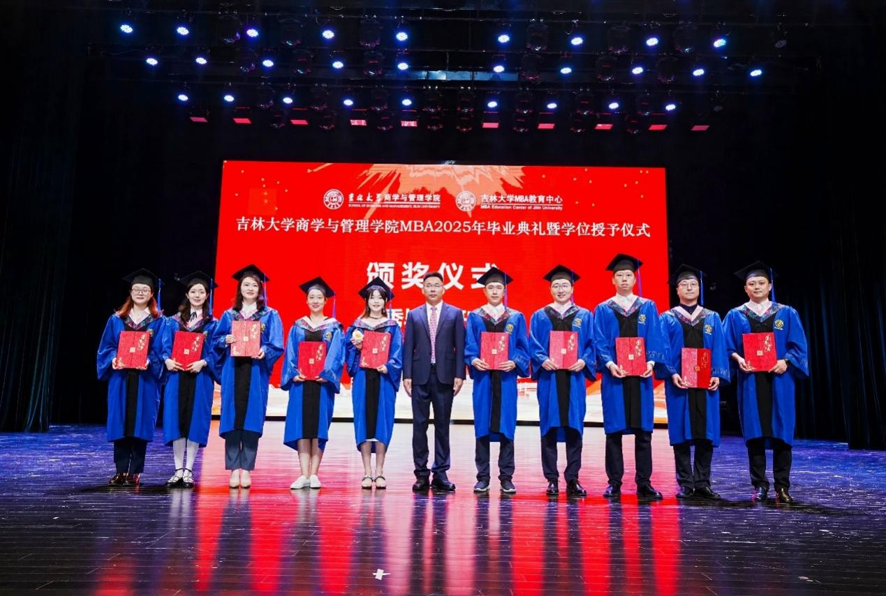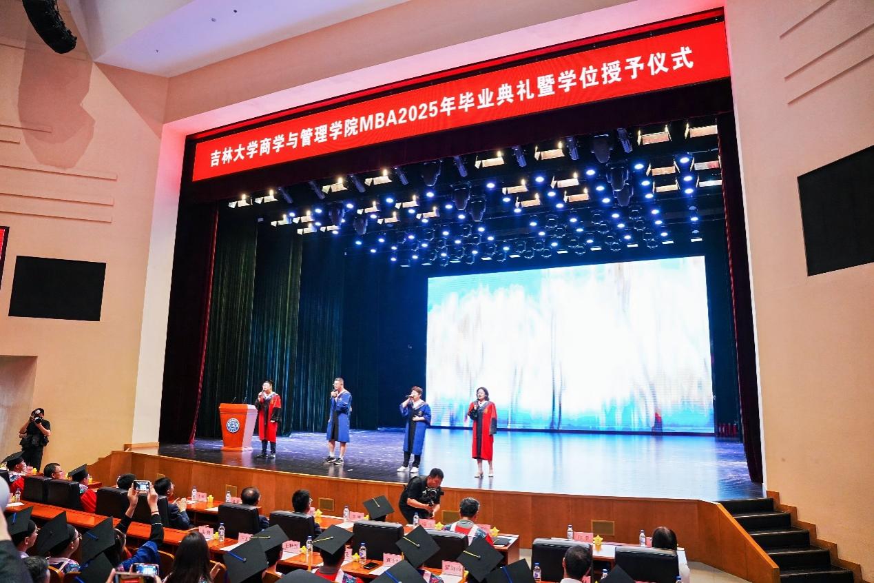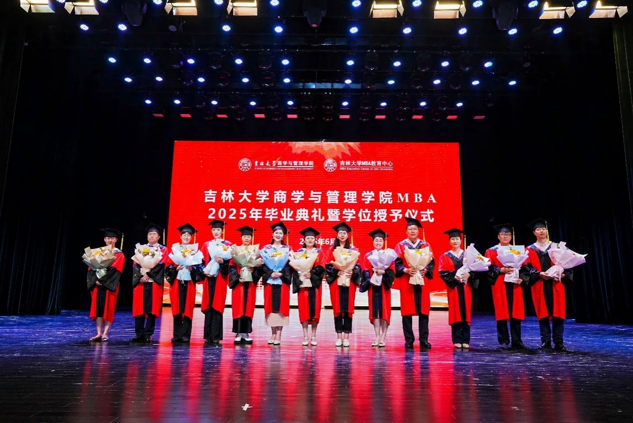 2025年MBA毕业典礼暨学位授予仪式在经久不息的掌声中圆满落下帷幕。这场盛典,既是对毕业生们学业征程的荣耀加冕,更是一场激荡着吉大精神的传承仪式。仪式镌刻下的不仅是 “吉大MBA”的金色印记,更将 “求实创新、励志图强”的校训熔铸成学生们前行的精神灯塔。从师长手中接过的学位证书,凝聚着课堂思辨的智慧、实践磨砺的锋芒,此刻正化作扬帆起航的风帆。愿 2025 届毕业生们携母校 “以诚信为裳,以创新为剑”的嘱托,在时代浪潮中锚定航向,以踔厉奋发之姿于商场挥写新篇,让吉大商管冰球突破