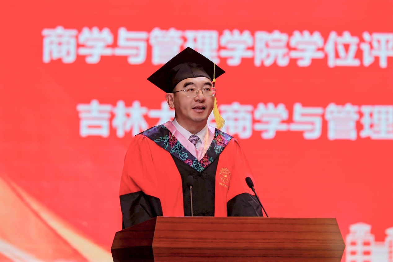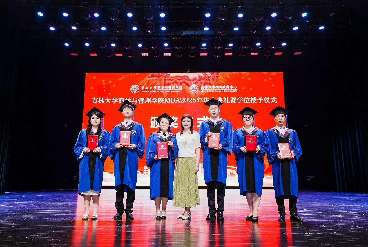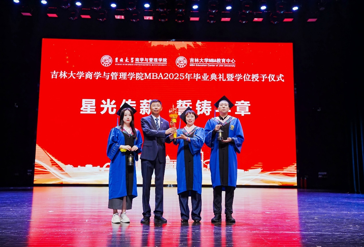 2025年MBA毕业典礼暨学位授予仪式在经久不息的掌声中圆满落下帷幕。这场盛典,既是对毕业生们学业征程的荣耀加冕,更是一场激荡着吉大精神的传承仪式。仪式镌刻下的不仅是 “吉大MBA”的金色印记,更将 “求实创新、励志图强”的校训熔铸成学生们前行的精神灯塔。从师长手中接过的学位证书,凝聚着课堂思辨的智慧、实践磨砺的锋芒,此刻正化作扬帆起航的风帆。愿 2025 届毕业生们携母校 “以诚信为裳,以创新为剑”的嘱托,在时代浪潮中锚定航向,以踔厉奋发之姿于商场挥写新篇,让吉大商管冰球突破