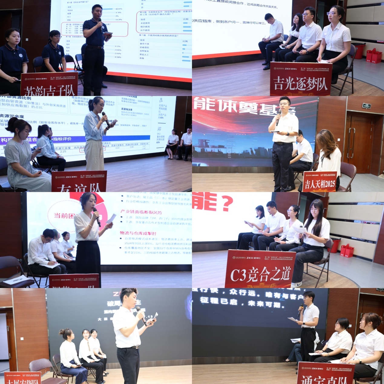 大赛分为赛前盲审和现场竞赛两个环节。现场竞赛环节采用大小PK制,8组队员围绕《行家所向,智能引航:AI工具重构震坤行工业用品采购全链路》案例展开头脑风暴,通过调研、搜集整理素材,探索人工智能技术在工业用品采购场景的实质性落地的路径。各组参赛队员各抒己见、侃侃而谈,在犀利的对手提问与独到的评委点评中体味管理思维的交流与碰撞。