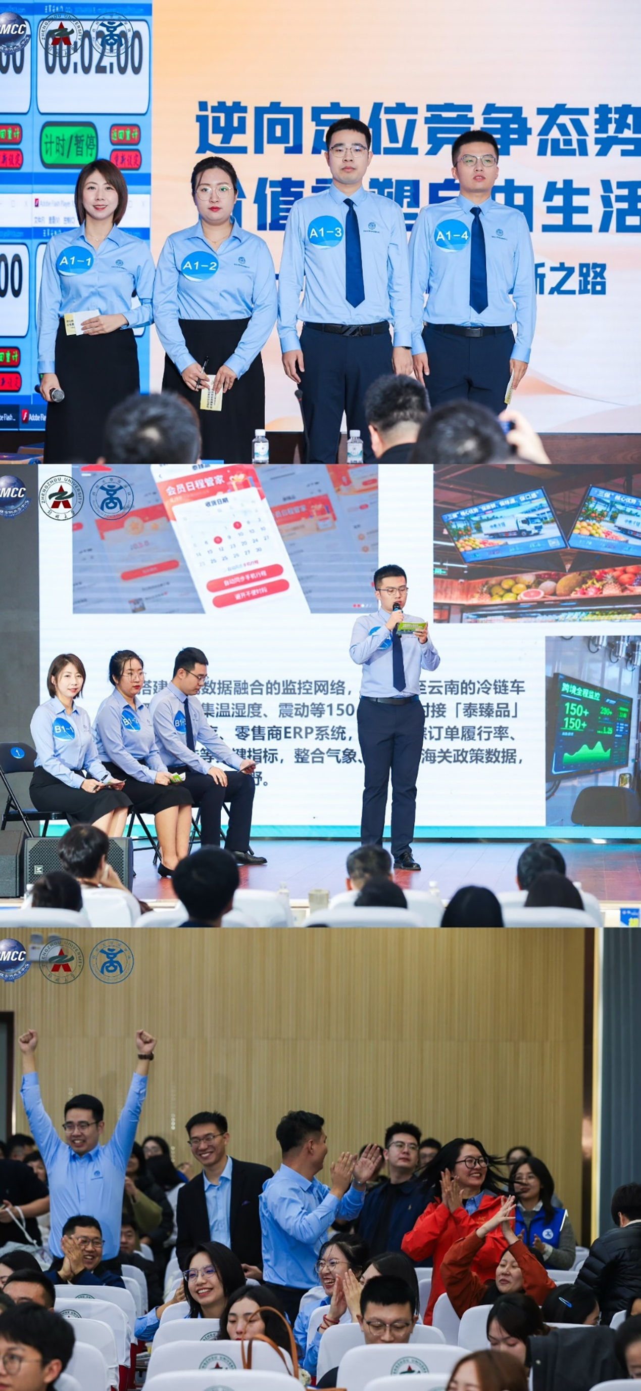 MBA代表队以小组第一的成绩顺利晋级,与大连理工大学、同济大学、四川大学、郑州大学、合肥工业大学共同进入10月26日晚上的冠亚军争夺赛。复赛以《从果园到舌尖:中泰跨境产业集团的榴莲冷链突围战》为题,面对仅有6小时的案例剖析与方案构建时限,队员们沉着冷静、精准破题,深度挖掘企业核心痛点,极限输出了兼具理论深度与创新可行性的案例解决方案,现场PK环节,4名上场队员配合默契、从容应答,展现出极强的专业素养与团队协作能力,赢得了专家评委的高度赞誉,最终以盲审得分和现场得分双第一的成绩强势卫冕冠军并创下 “开赛以来首次卫冕”的赛事新纪录。