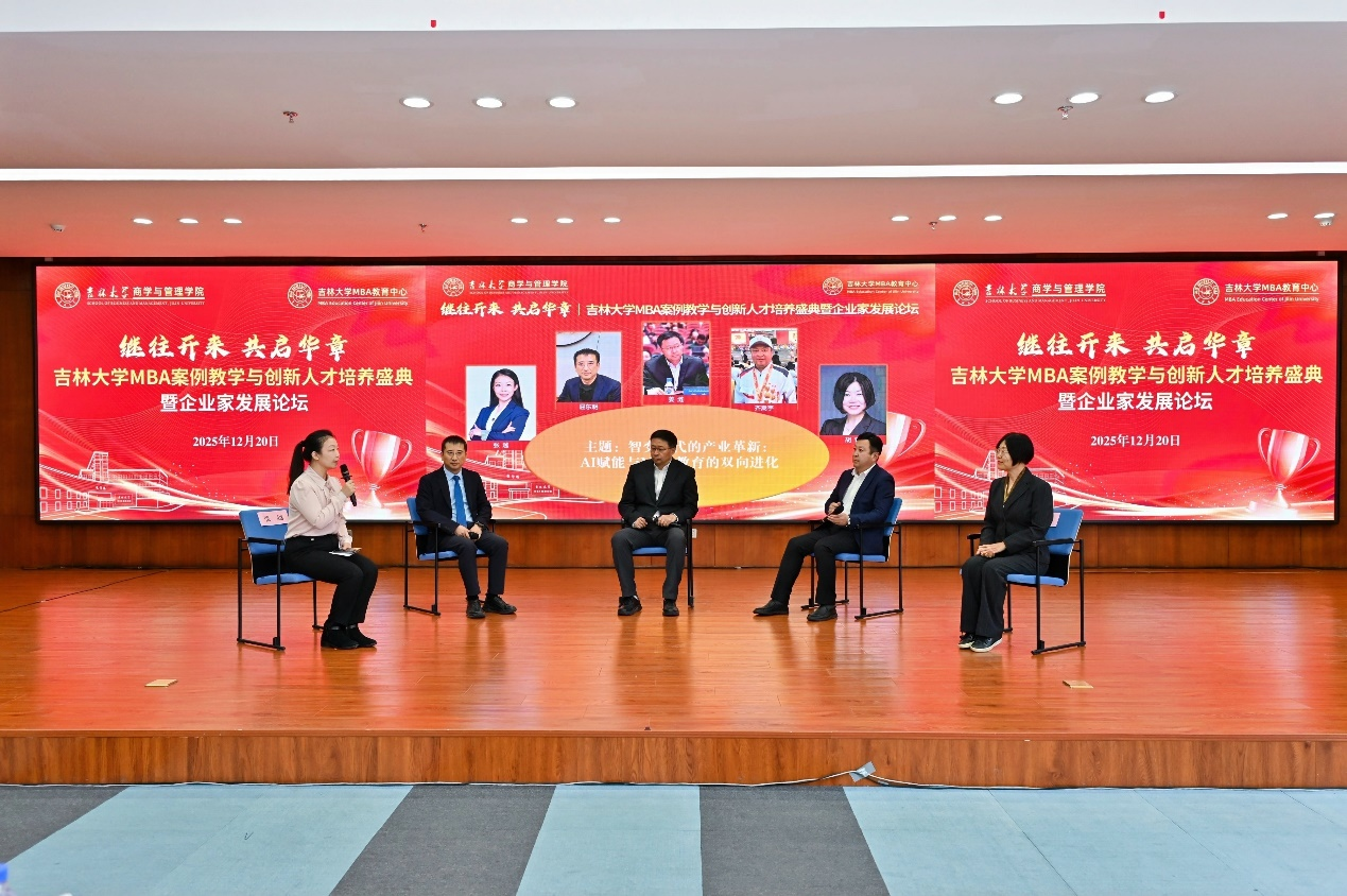 圆桌论坛环节将盛典推向思想交锋的高潮。姜涟、屈东明、胡青、齐嵩宇与张越围绕“智变时代的产业革新:AI赋能与MBA教育的双向进化”展开对话,共同探讨人工智能对商业与教育的影响及校企协同育人的路径。