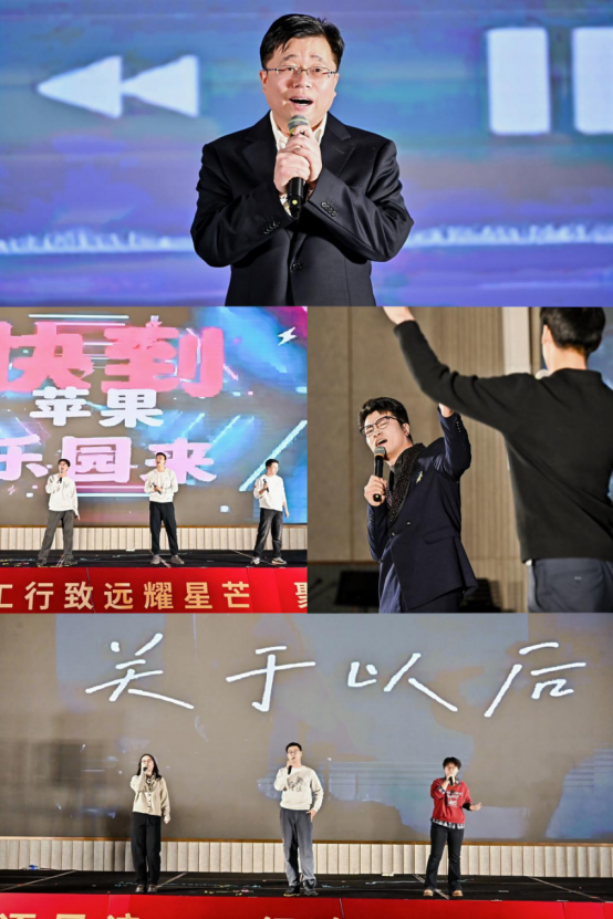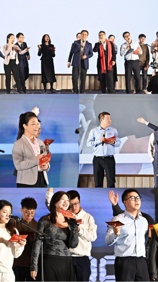 案例大赛冠军团队同台合唱《最初的梦想+当》,将励志与情怀融于音符,张公一、张越、周昕、印重、于琦等老师与学生同台高歌,彰显师生同心、薪火相传的力量。