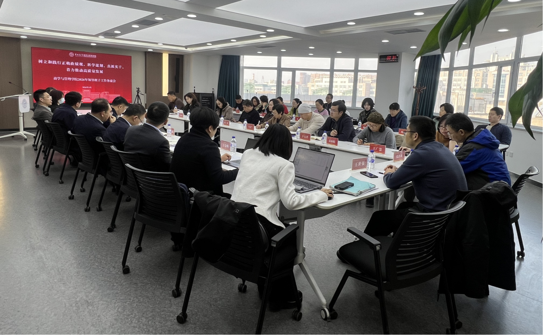 国际影响力”为主题,副院长马捷以“2026年本科教学管理工作要点”为题,副院长张小宇以“2026年学术型研究生培养工作设想”为题,MBA教育中心主任张公一以“聚力‘四项工程’,续写内涵新篇”为题,党委副书记李帅以“以虚促实谋良策,马年奋进新征程”为题,党委副书记兼副院长马腾以“推动‘五红学堂’迭代跃升,构建具有学科特色的育人体系”为题,行政副院长隋祎宁以“夯实基础,提升效能,凝心聚力,共促发展”为题,结合分管领域工作依次进行了发言。党委书记赵军对与会同志的发言逐一进行了点评。