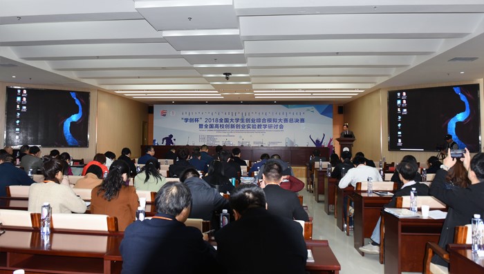 全国高校创新创业实验教学研讨会与大赛同期举行。由国家级实验教学示范中心联席会经管学科组副组长任晓阳教授主持,来自北京大学的周勇义教授,哈尔滨商业大学的张莉教授,北京工商大学嘉华冰球突破 的祁焱华教授,杭州贝腾科技有限公司董事长黄林先生分别以“虚拟仿真实验教学项目建设与创业教育”、“