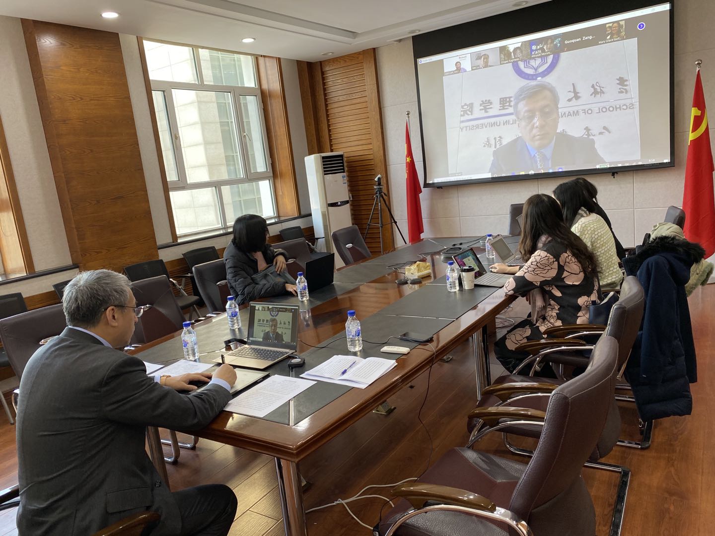The international alliance formed by top information institutes, iSchools, held its AP-IS Biz meeting online on December 2, 2020. The meeting, which was hosted by Seoul National University, was attended by experts from all over the world, including China, ROK, Thailand, Japan, Australia, and Malaysia. Professor Li Beiwei, Dean of the School of Management, Jilin University attended the meeting, along with Professors Deng Jun (Deputy Director of the Department of Information Management), Song Xueyan and Associate Professors Liu Jia and Shen Wang.