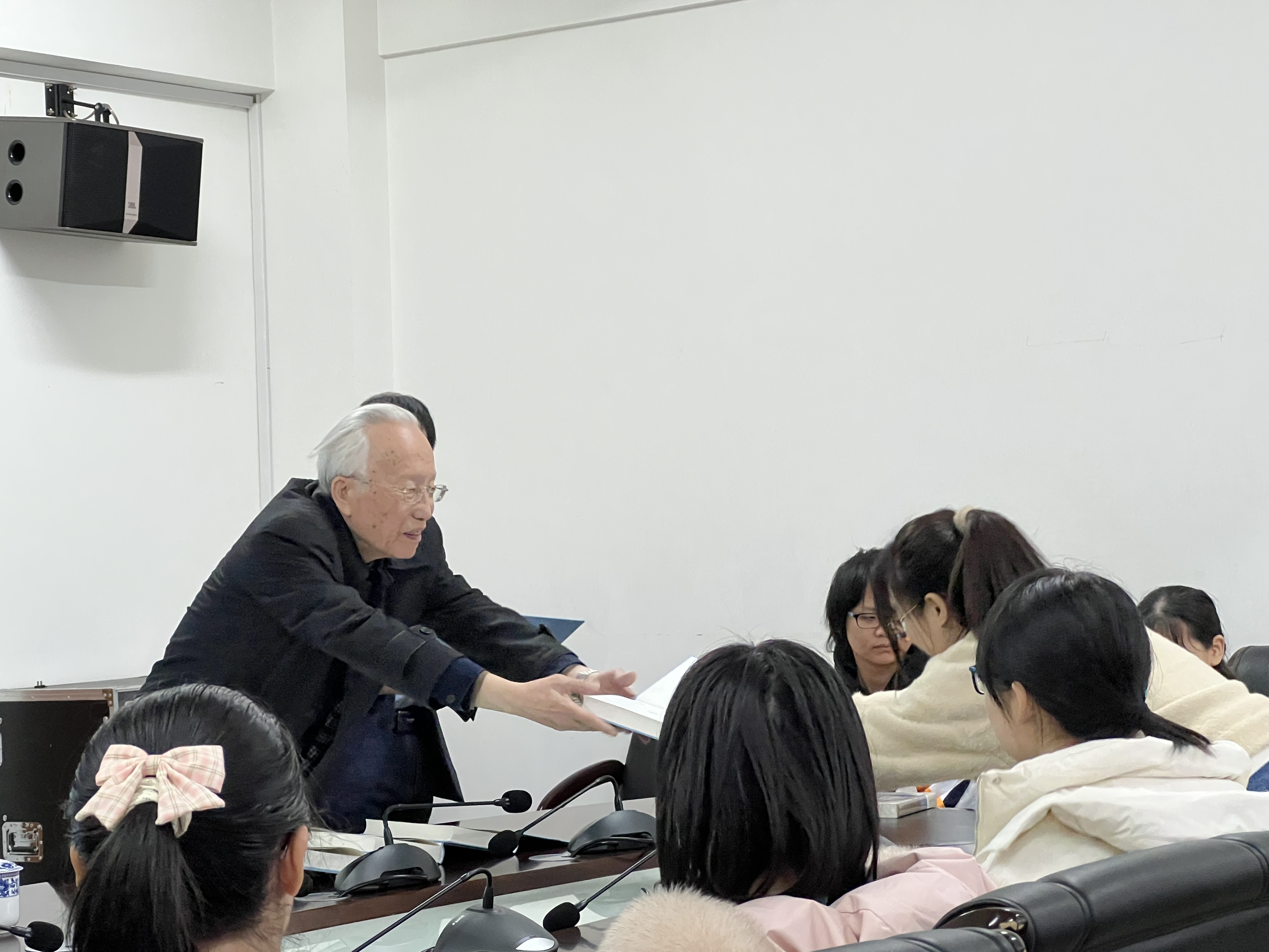随后,孙老师结合自己四十多年哲学教学和研究经历,希望本科生的哲学教学要做到:激发学生的理论兴趣、撞击学生的理论思维、拓宽学生的理论视野、提升学生的理论境界。而学习哲学必须做到三个积累:文献积累——发明于心、思想积累——得道于心、生活积累——活化于心。在此基础上,孙老师以鲜明的概括,向同学们提出了三条极具指导性和实用性的建议:第一,善于读书;第二,肯于笨想;第三,勤于写作。孙老师就学习的共通性与学习哲学的一些特殊要求方面,用最简单的方式做了概括性的解读和阐释:第一善于读书,学习哲学首先要多读书,读书不但要乐于读书,更要善于读书。第二肯于笨想,笨想不是瞎想,而是以苦读为基础,做到真正的前提反思和追问。第三勤于写作,善于读书和肯于笨想,最重要落实到勤于写作上,学哲学必须学会通过写作来升华思想,多写才是硬道理。