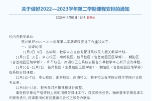 发布《关于做好2022—2023学年第二学期课程安排的通知》。