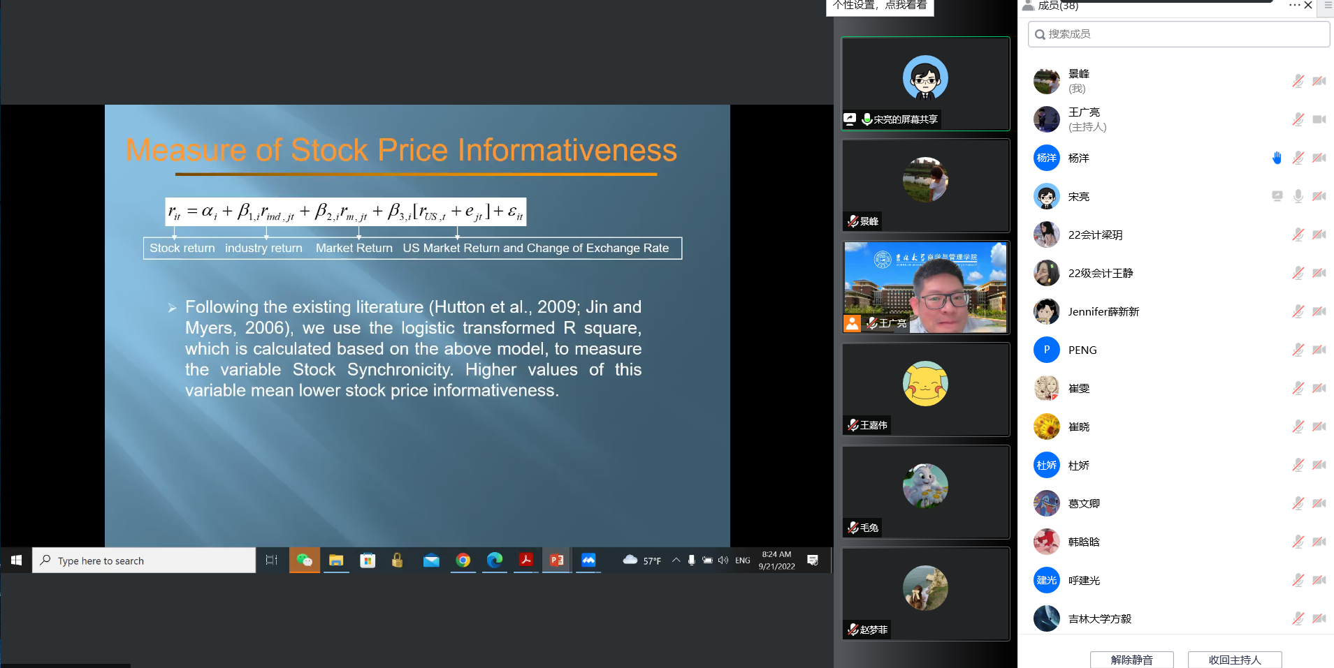 宋亮副教授的讲座题目是:Are Accounting Regulations and Enforcement Mechanisms Complements or Substitutes in Determining Stock Price Informativeness: Global Evidence,这是一篇探讨会计监管和执行机制对股价信息含量影响的工作论文。讲座首先基于会计报表信息、会计监管和执行机制的相关学术研究,构建了依托于现实基础的理论框架,并提出具体假设。然后通过梳理国际银行中近三十多个国家的银行业数据,构建计量模型。随后检验了会计监管和执行机制对资本市场上股票价格信息含量的影响作用是互补效应还是替代效应。论文发现会计监管和执行机制影响会计信息性的主要渠道是信息披露、直接监督和外部审计。这对于更有效的方式设计会计监管制度和执行机制具有政策意义。