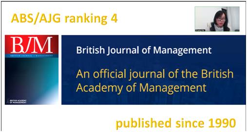 接下来,任爽老师就“如何在顶级期刊发表论文”这一主题和与会师生进行了分享。任爽老师目前任职英国管理学会官方期刊British Journal of Management主编,因此她以该期刊为例,对于老师和同学们在向国际核心期刊投稿过程中经常会出现的问题以及注意事项进行了总结和说明,对于老师和同学们感兴趣的问题也给出了自己的意见和建议。本场讲座吸引了众多校内外专家师生的积极参与,反响热烈。