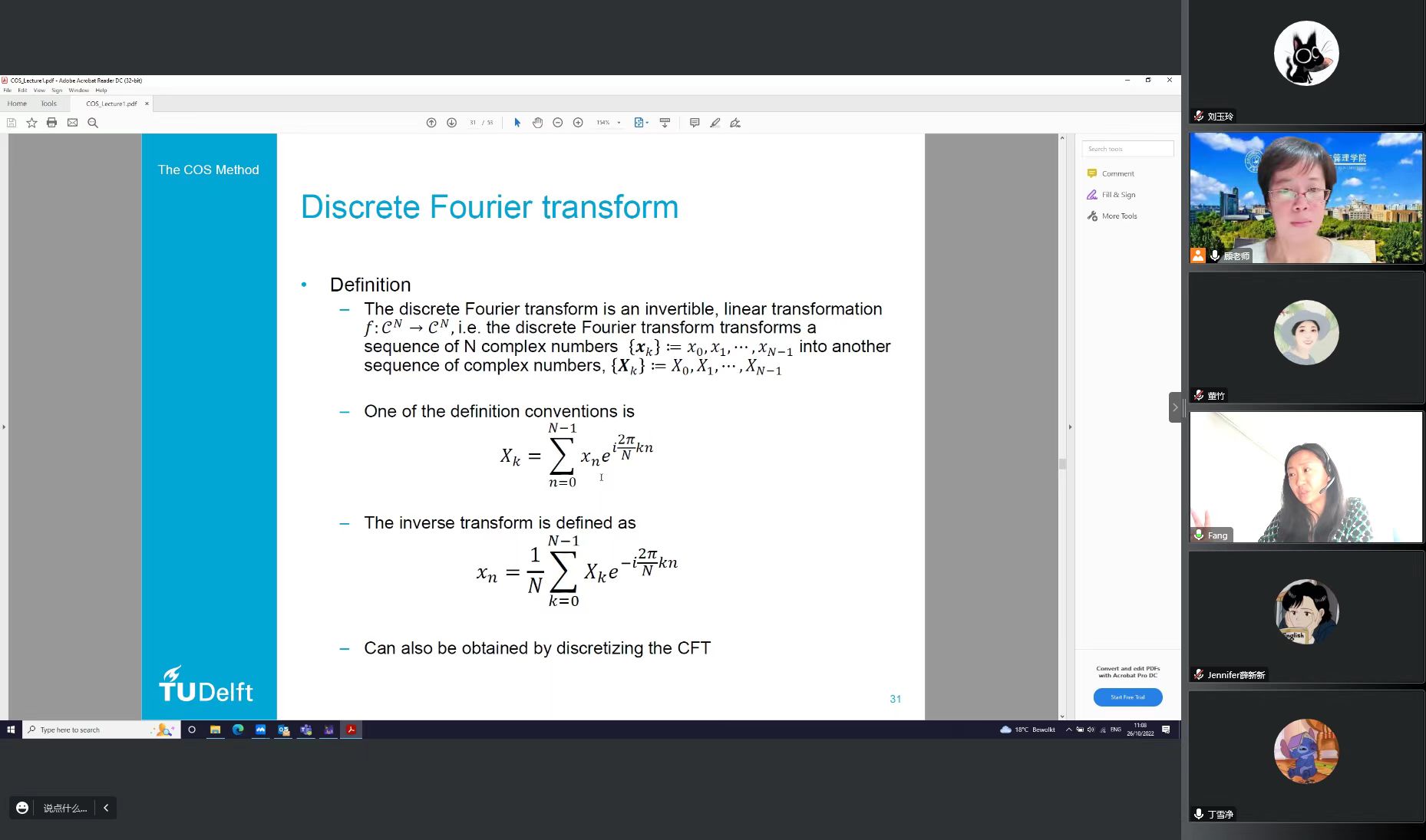 分享结束后,方芳博士和参会的老师学生们展开了热烈的讨论,方芳博士对大家提出的问题进行了详尽解答。在讨论过程中,学生们对于期权定价以及傅立叶变换等有关概念和研究方法有了更深入的了解。通过师生们的积极参与,共同营造了一个轻松欢快的讲座氛围,让每一位参会人员都有所思考、有所收获。