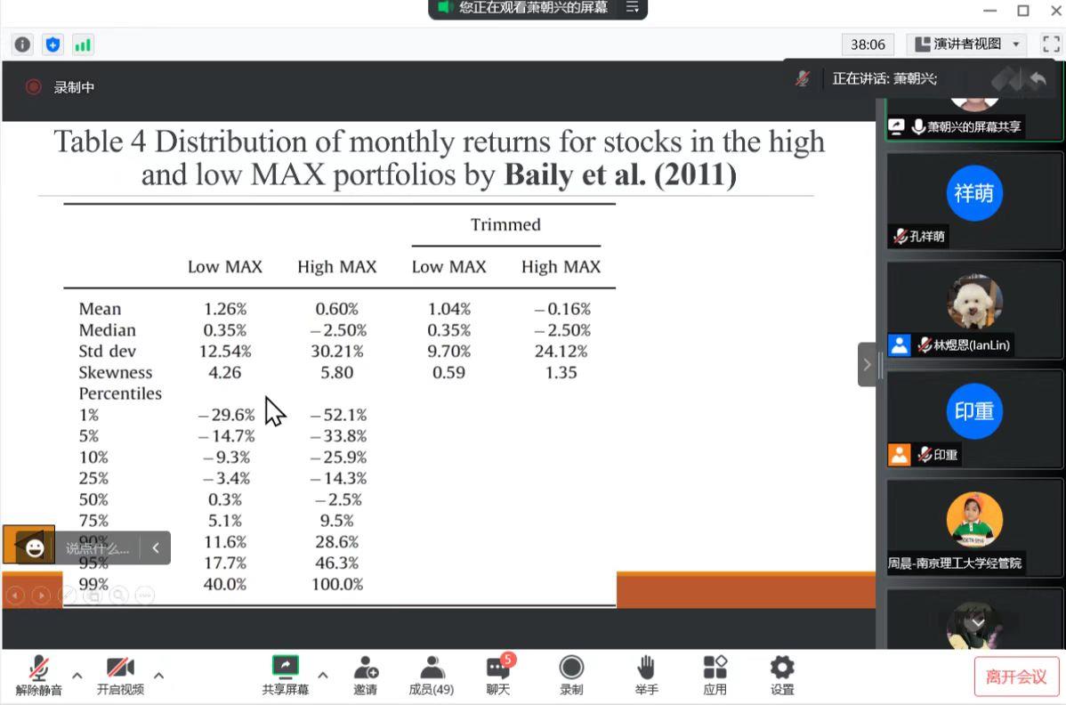 萧朝兴教授对近期的研究成果“Is Investing in Lottery-Like Stocks Really Unprofitable?”进行分享。讲座由林煜恩副教授主持。受疫情影响,本次讲座在线上进行,冰球突破