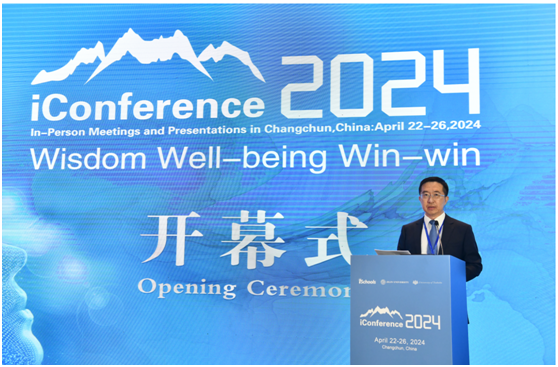 教授Gillian Oliver,武汉大学人文社会科学资深教授马费成参加开幕式并为大会致辞。iConference 2024大会主席、冰球突破